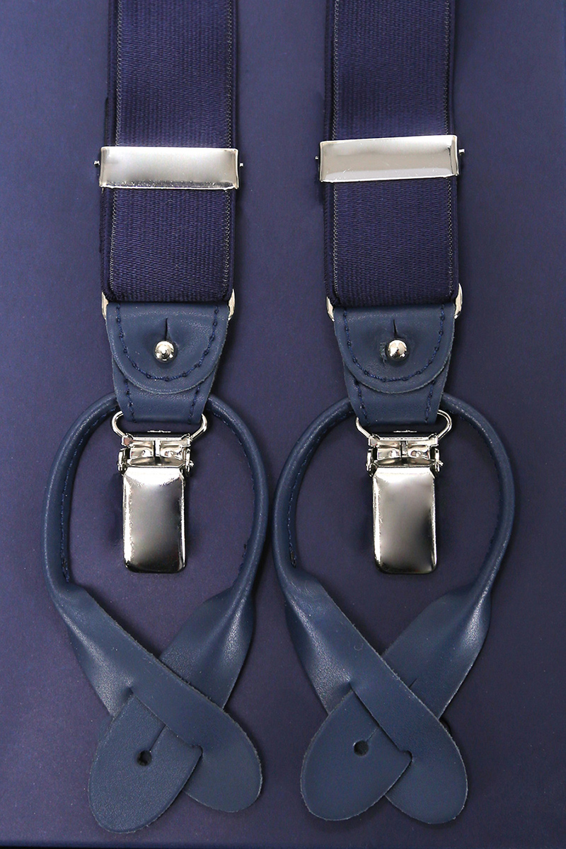 Braces in fabric and leather. Adjustable.