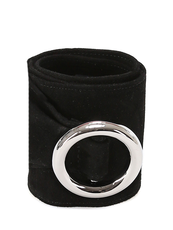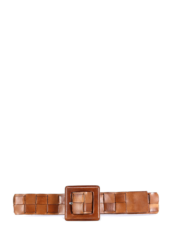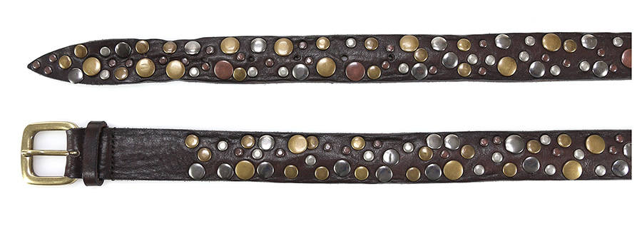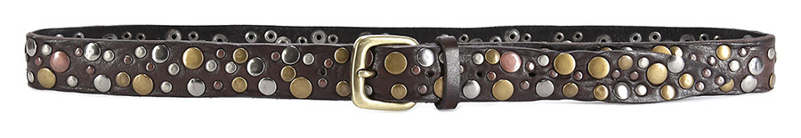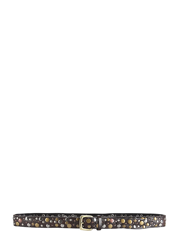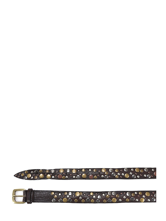 Leather belt with metal buckle. Applied studs. Height 3.5cm.