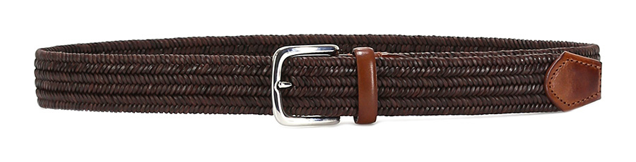 Stretch leather belt with metal buckle. Height 3.5cm.