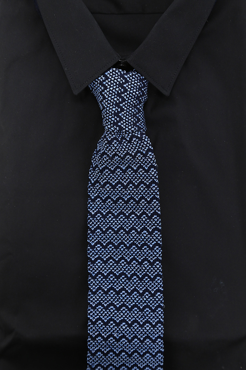 Cotton and silk blend tie. Zig-zag pattern. Width 6.5cm. Length 140cm.