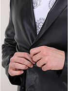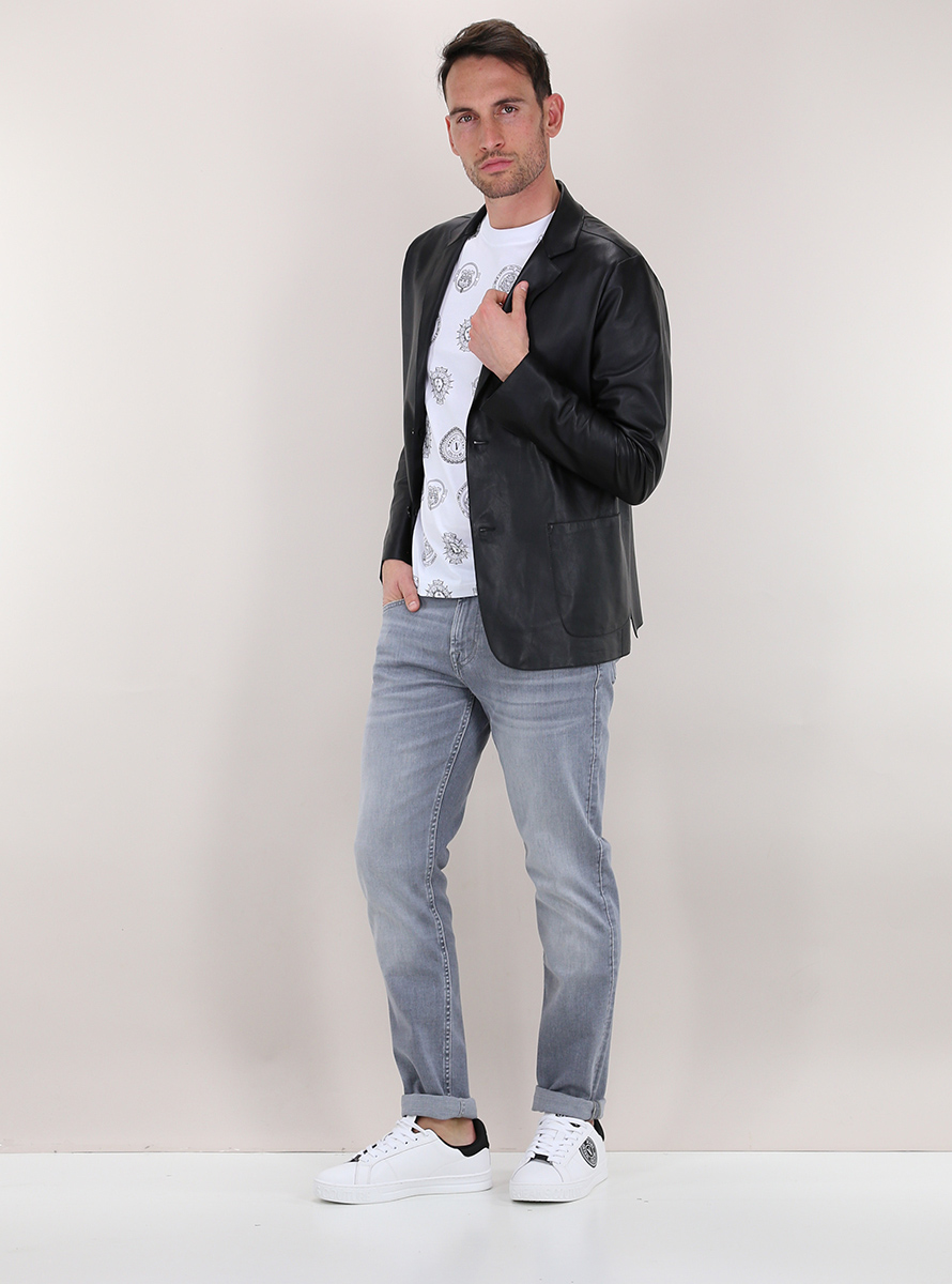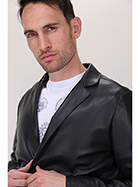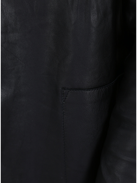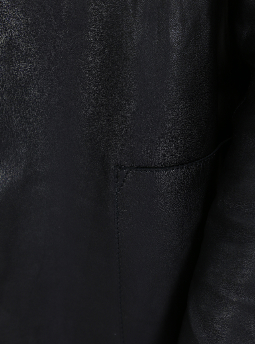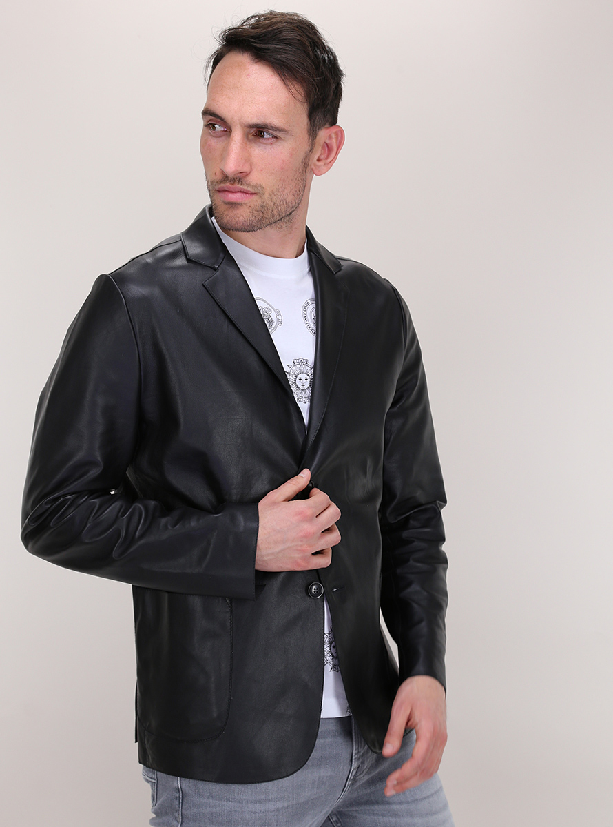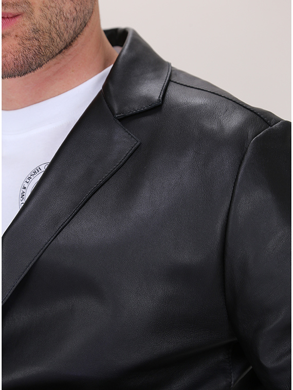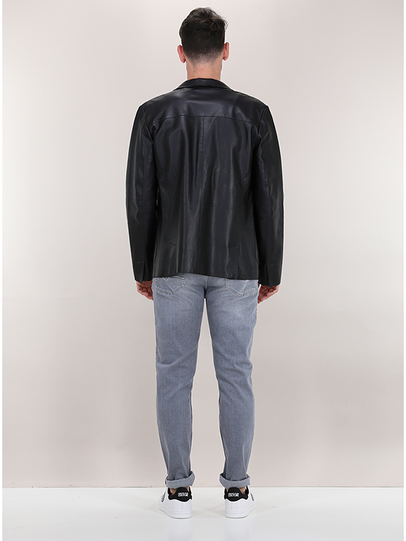 Unlined Bully leather jacket. Classic collar with reverse and two-button closure. Long sleeves with slit at the bottom. Front patch pockets and double vent on the back. The model is 1.80 tall and wears size 50.