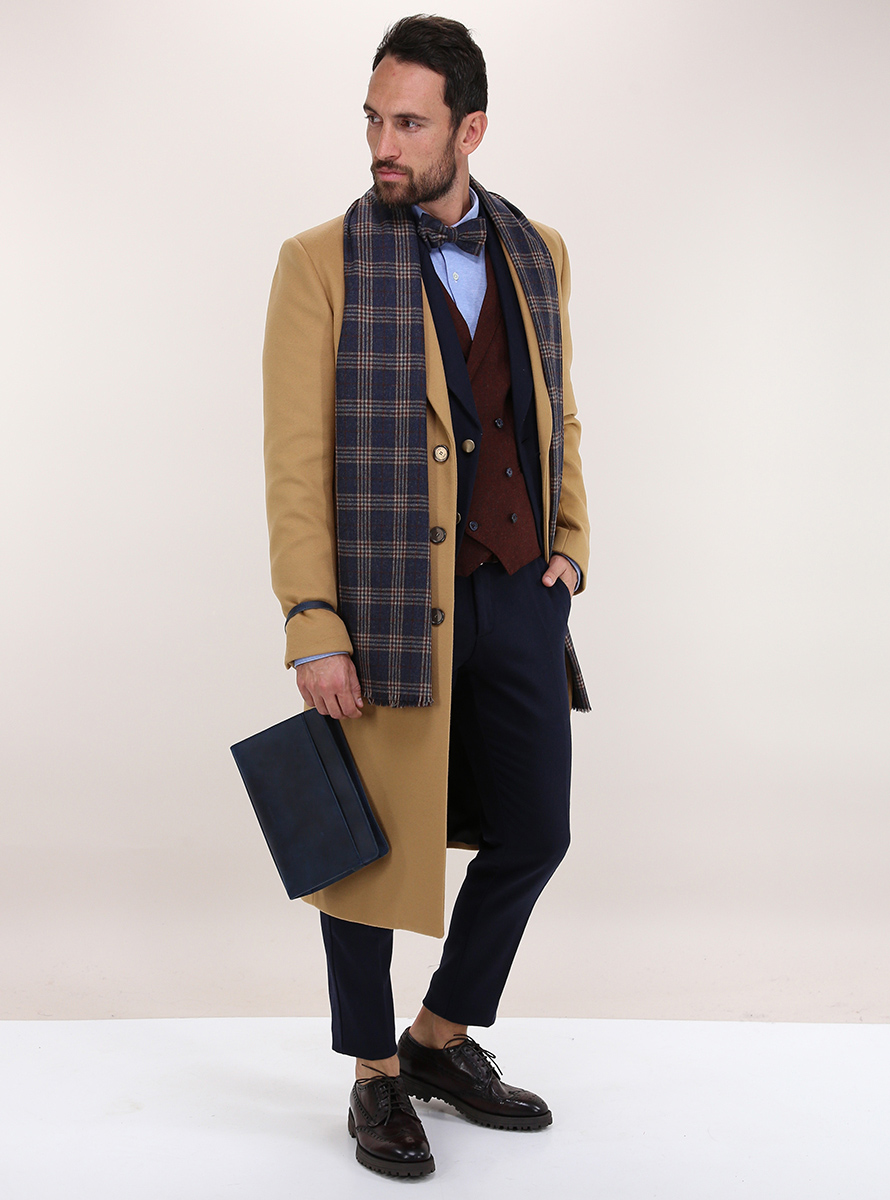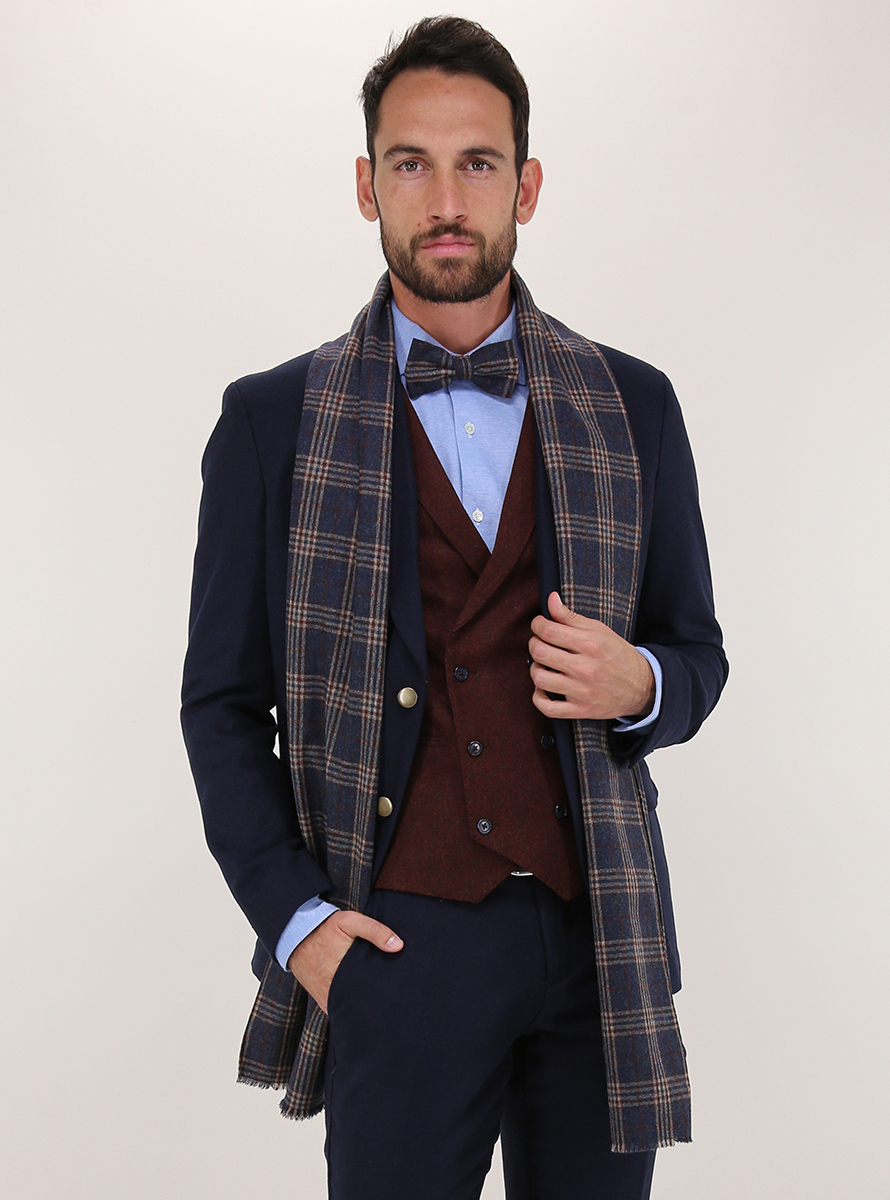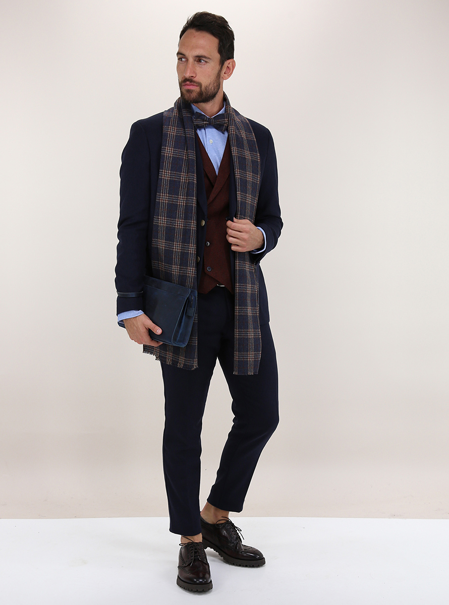 Marsem Collection jacket in semi-lined virgin wool. Long sleeves and peak lapel collar. Pockets with flaps and closure buttons on the front and on the sleeves. Double vent on the back. The model is 1.80 tall and wears size 48.