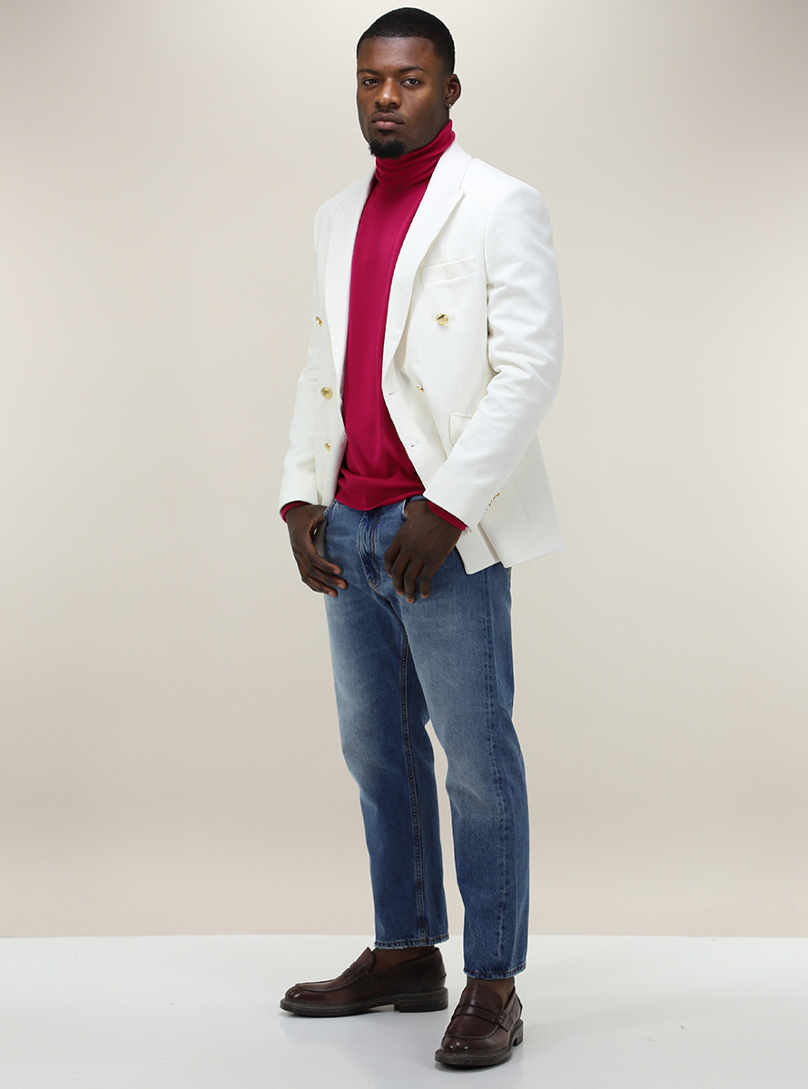 : Slits at the bottom, Logo, Contrasting applications, Gold details, Pockets