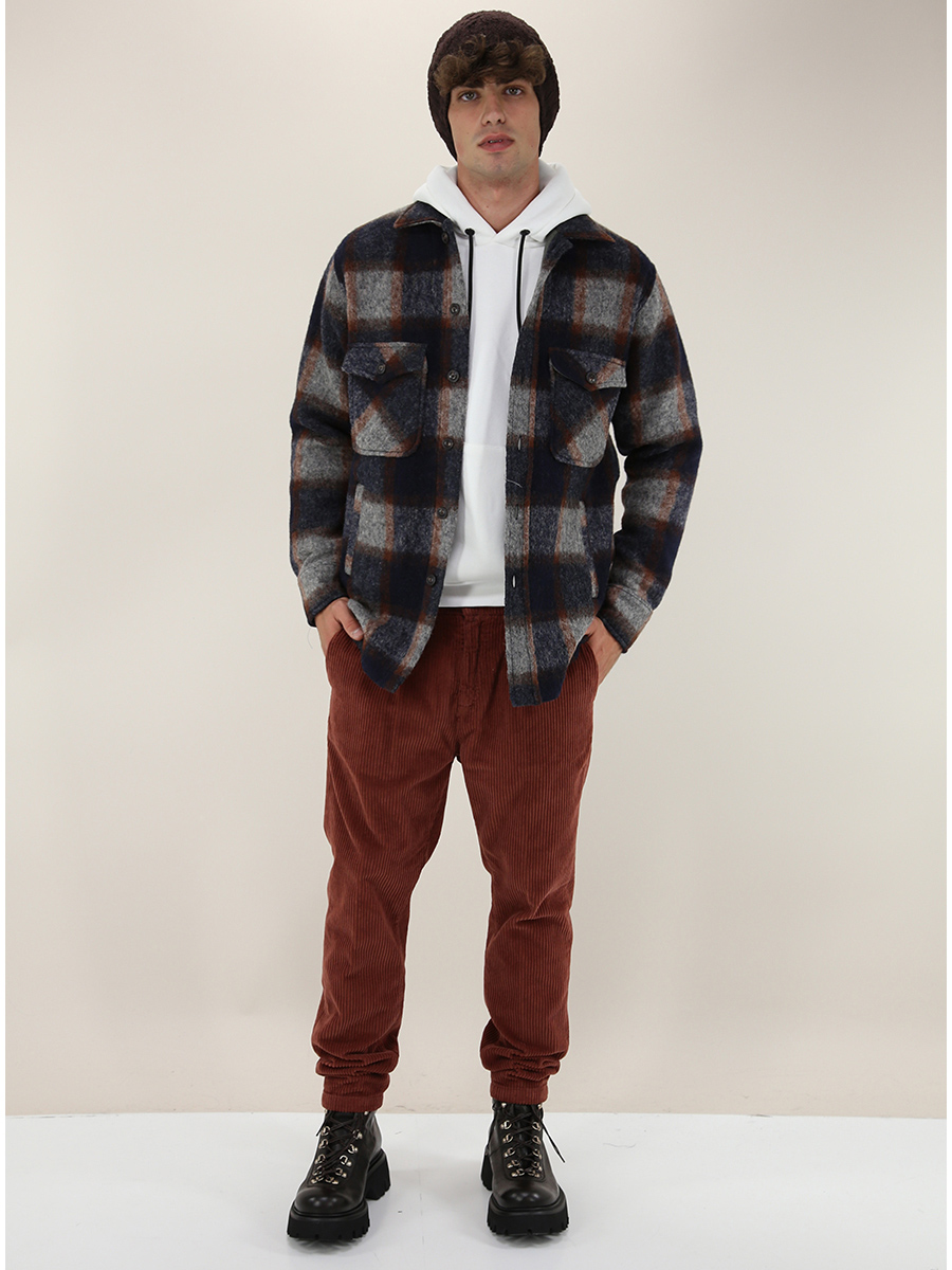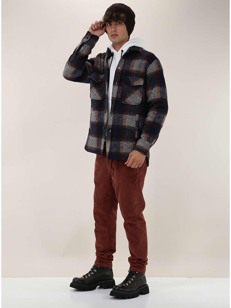 Applications: Check pattern, Slits at the bottom, Logo, Pockets