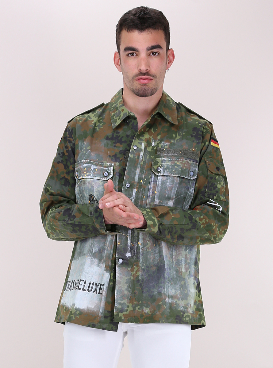 Trashdeluxe jacket in cotton. Long sleeves and classic neck. Patch pockets, zip and front closure buttons. Camouflage pattern with patchwork. The model is 1.75 cm tall and wears size M. This product is "regenerated" and finished by hand in Italy