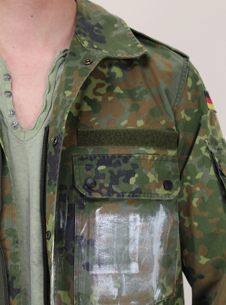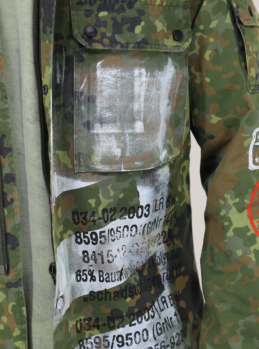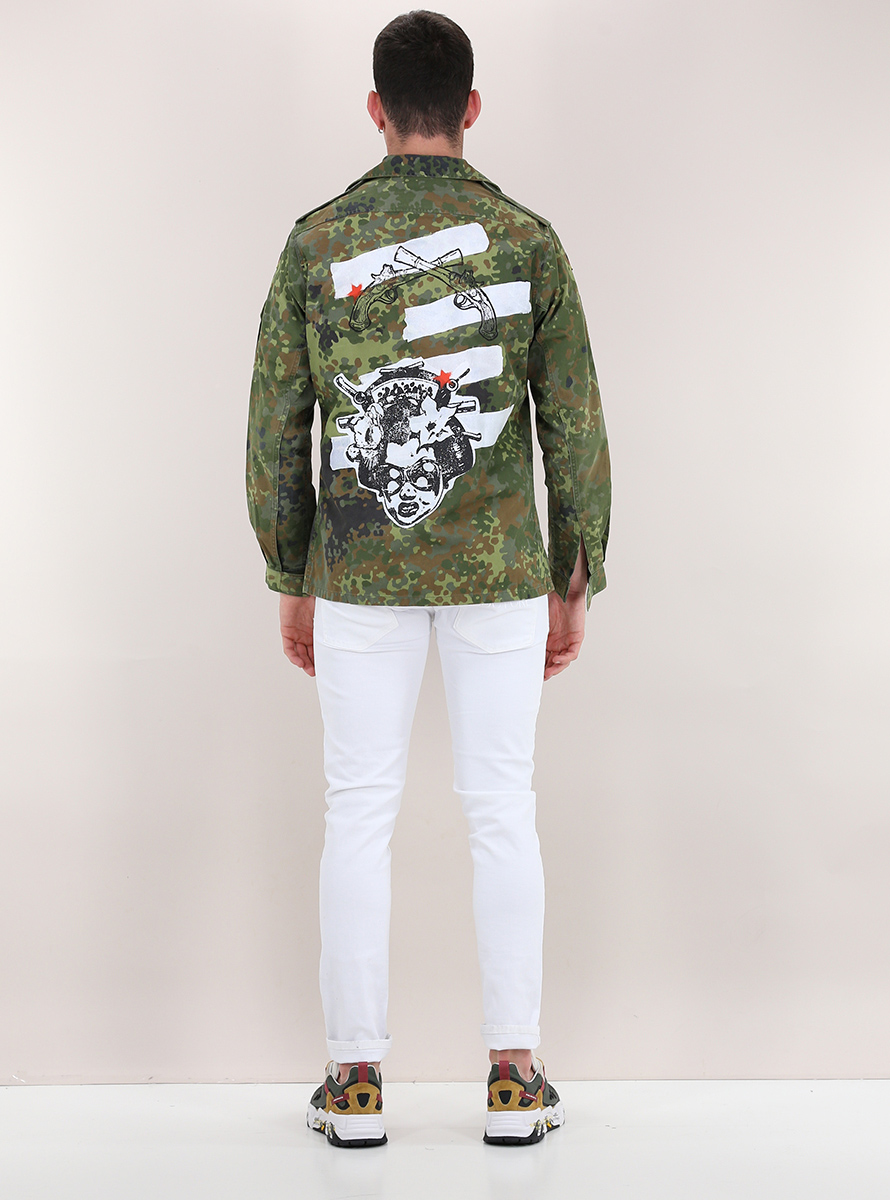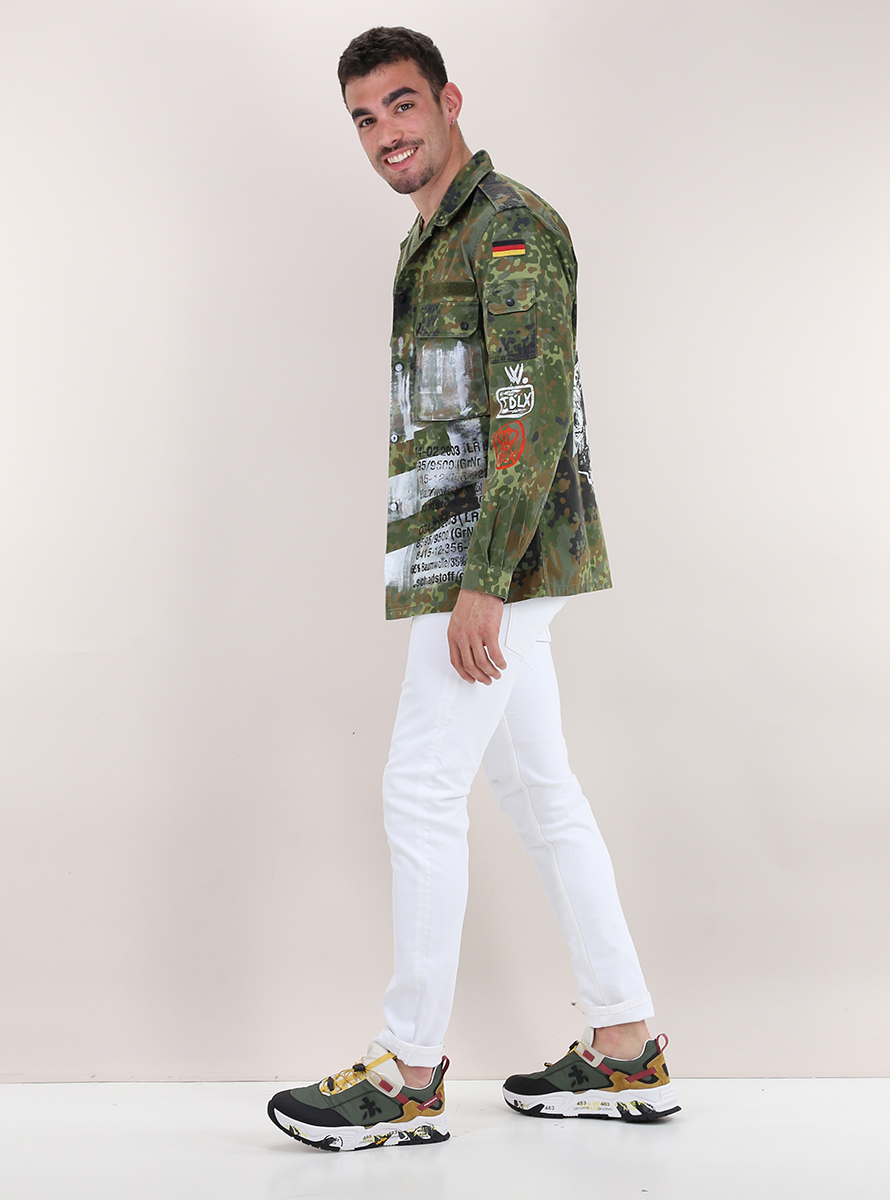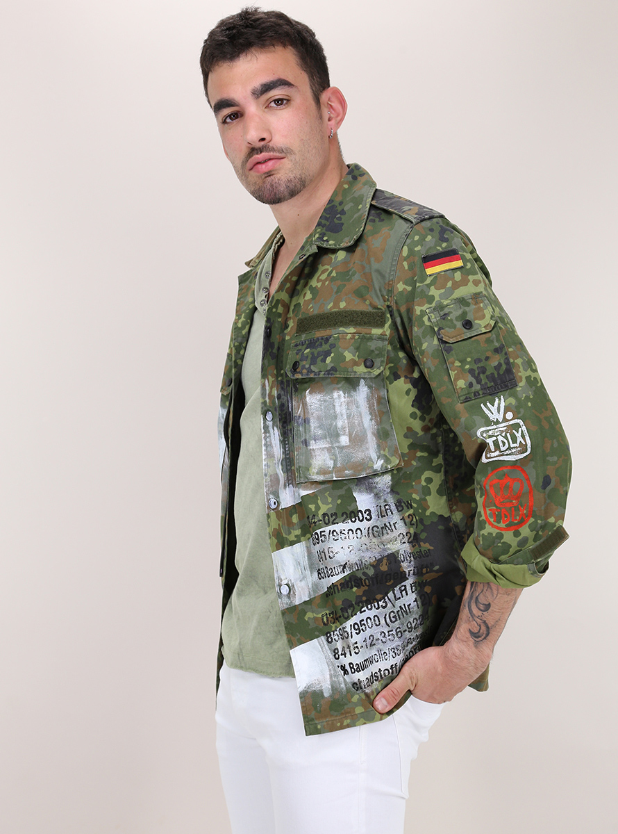 Trashdeluxe jacket in cotton. Long sleeves and classic neck. Patch pockets, zip and front closure buttons. Camouflage pattern with patchwork. The model is 1.75 cm tall and wears size M. This product is "regenerated" and finished by hand in Italy