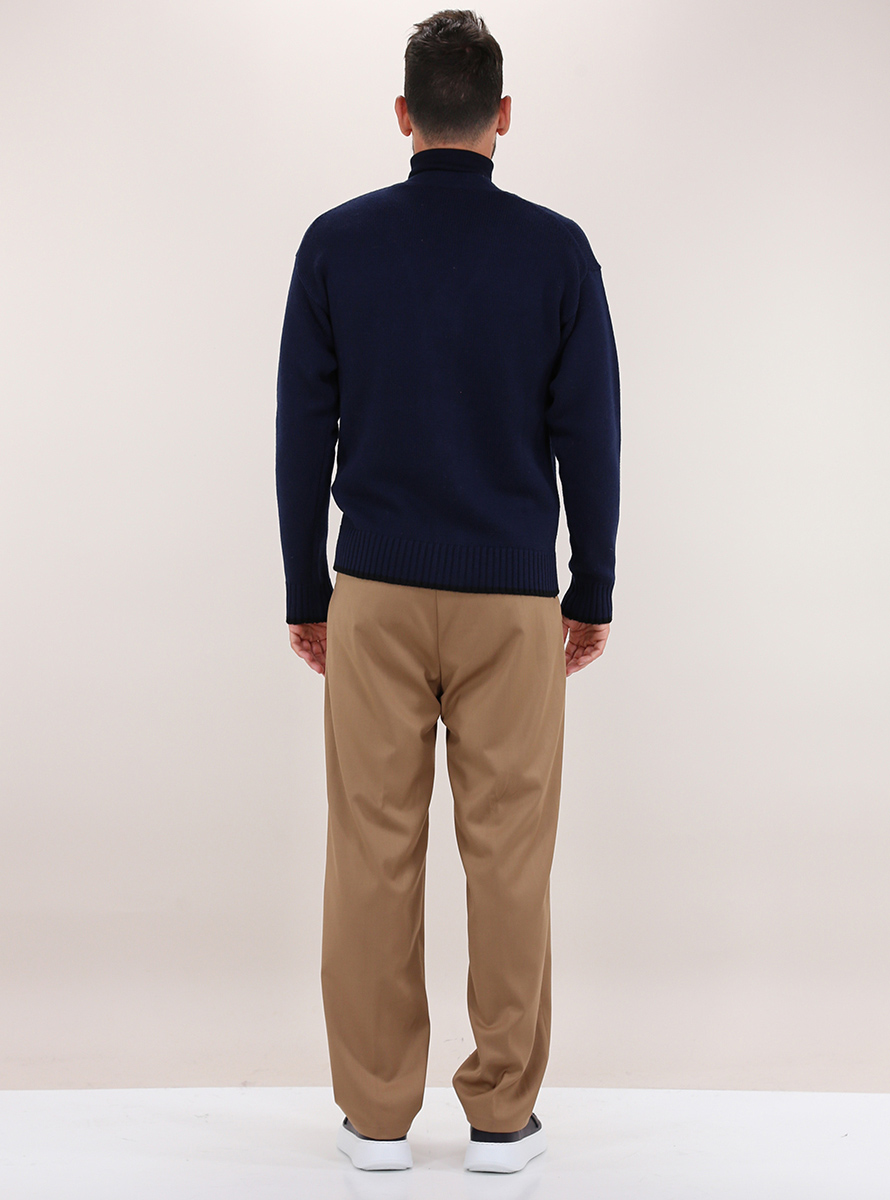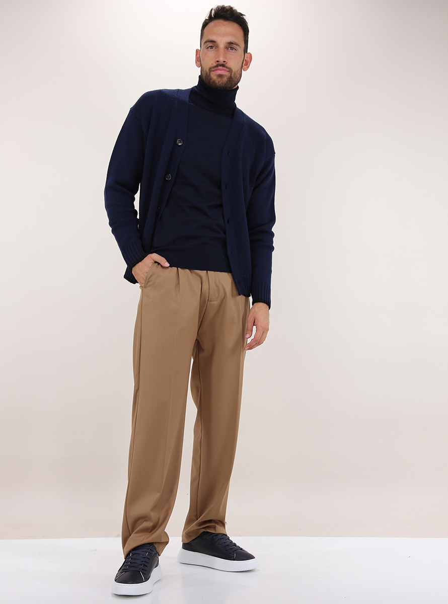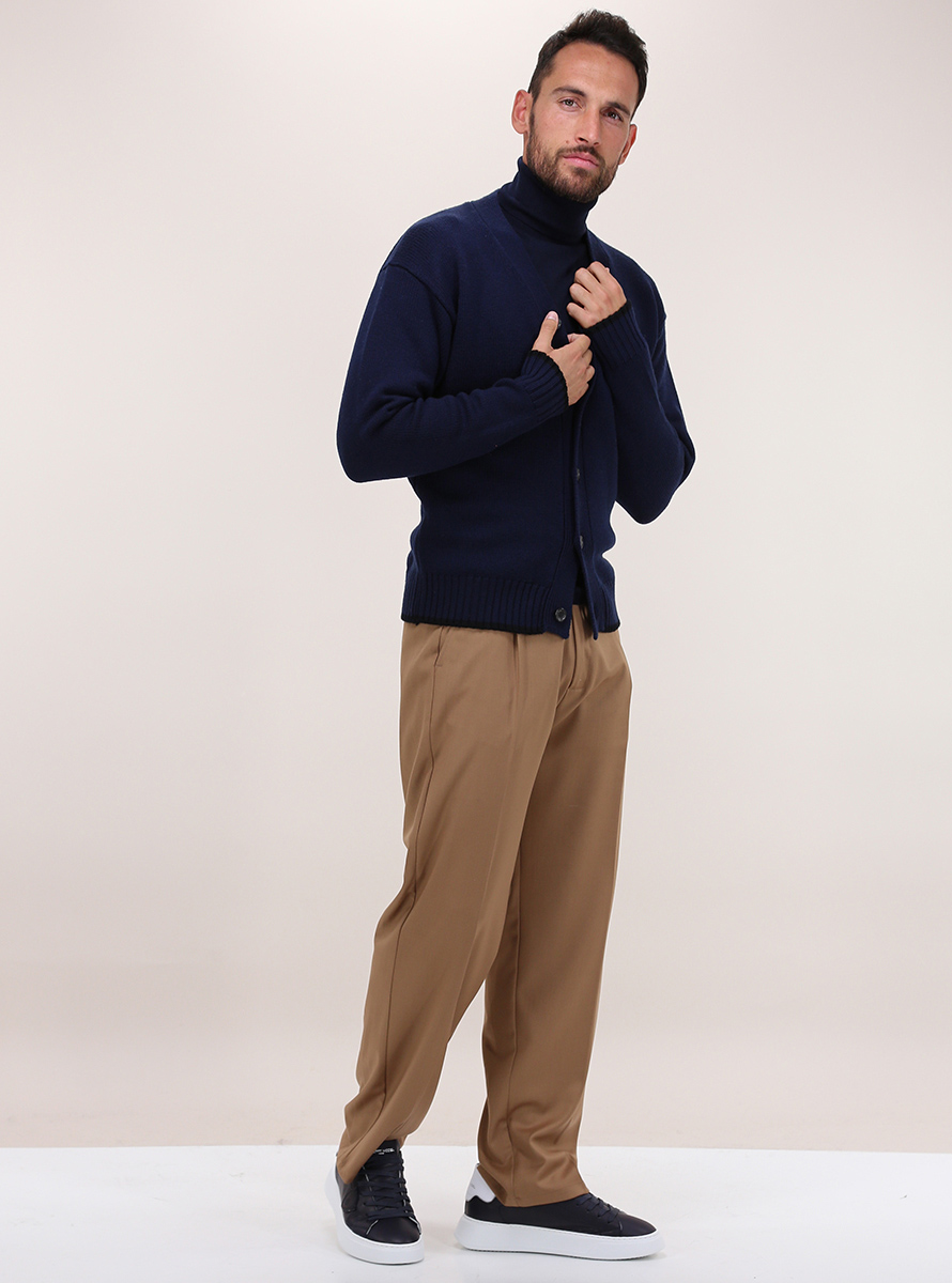 Lowbrand cardigan in merino wool with long sleeves. Regular fit. Contrasting edges. The model is 1.80 tall and wears size II.