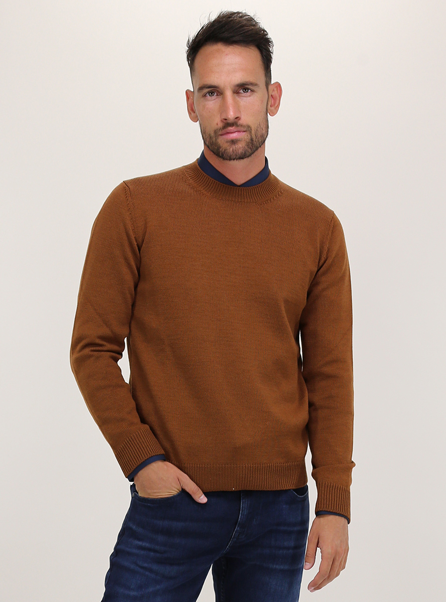 Roberto Collina sweater in pure merino wool. Long sleeves and round neck. Cuff edges. The model is 1.80 tall and wears size 48.