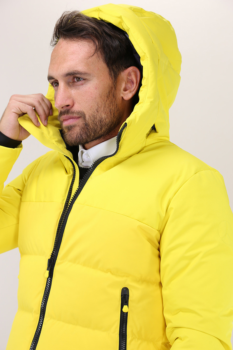 Piumino tecnico People Of Shibuya in gore-tex idrorepellente dotato di tecnologia RECCO (riflettori che non richiedono batteria che permettono di essere rintracciati dai soccorritori in caso di smarrimento in outdoor o incidente da valanga). Imbottitura in vera piuma e bretelle interne staccabili. Maniche lunghe e collo a cappuccio con coulisse. Chiusura a zip frontale con doppio cursore e tasche laterali.