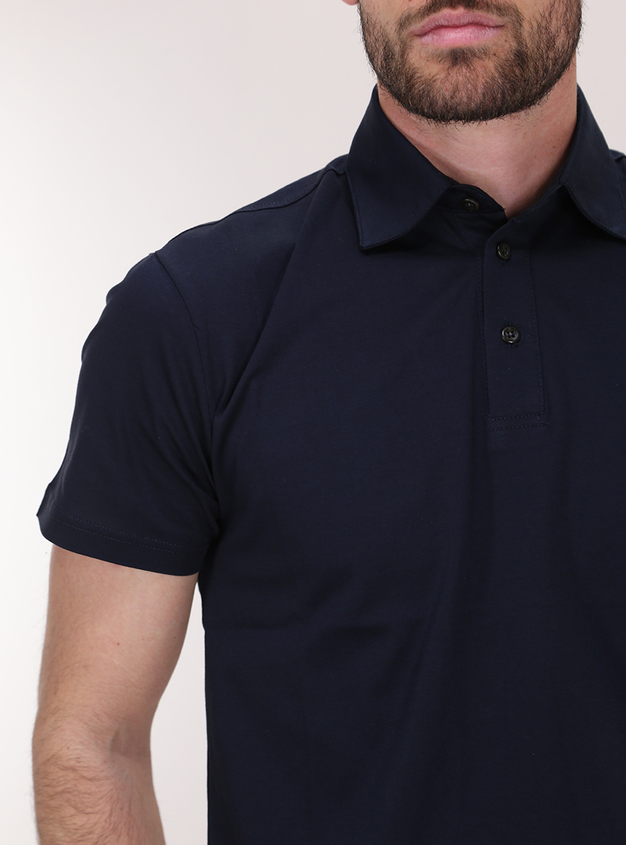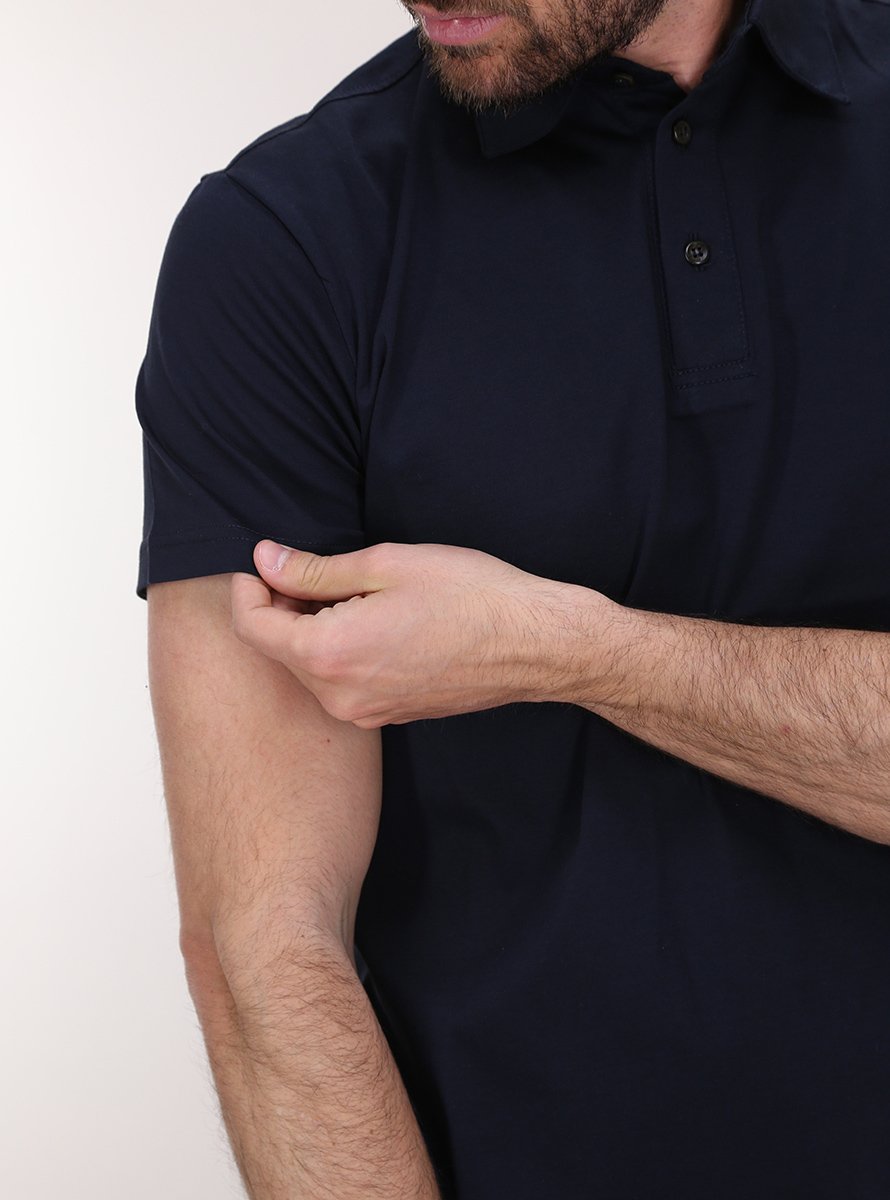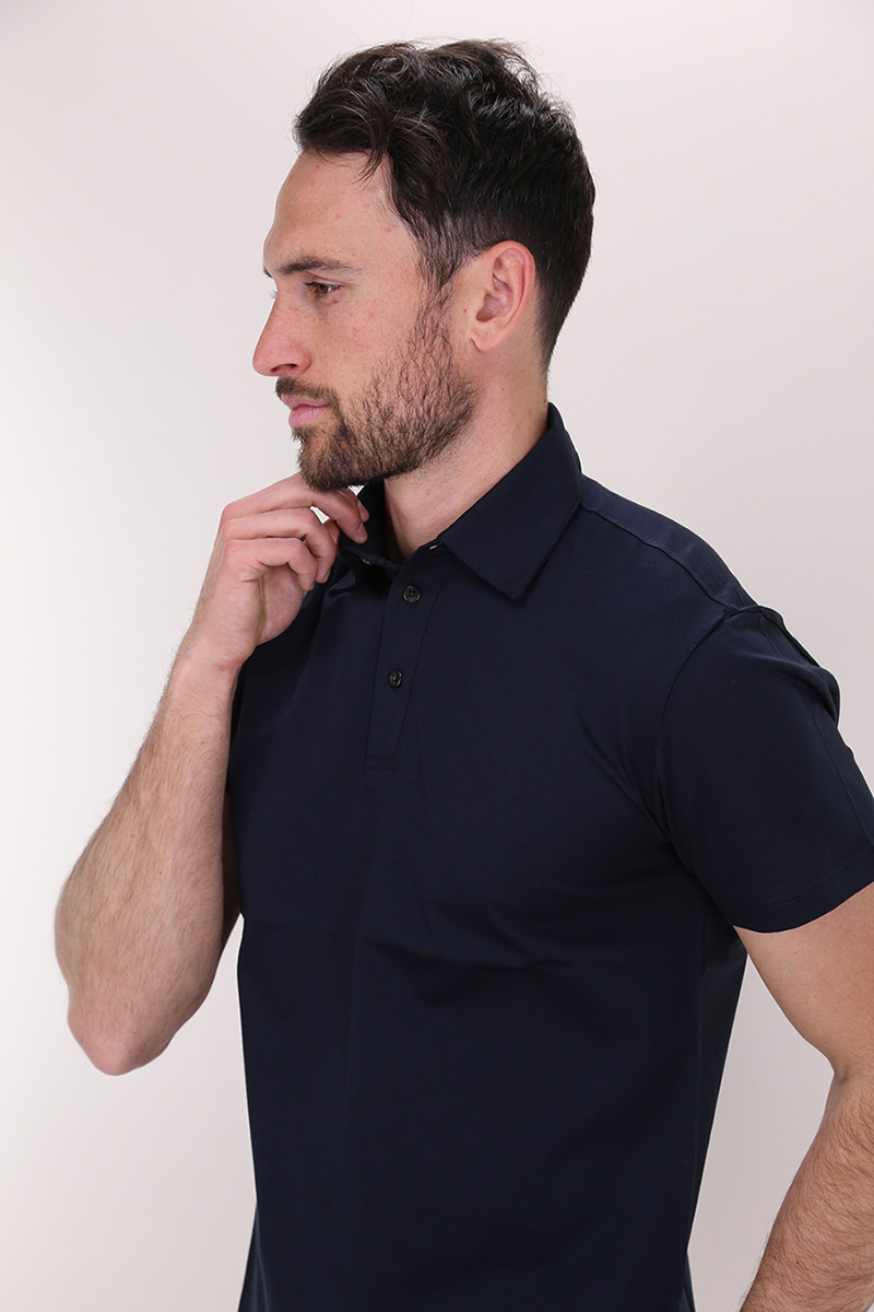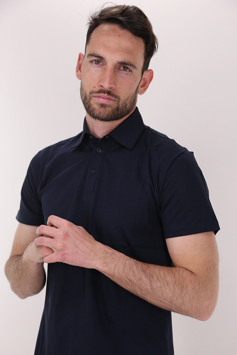 Pt polo shirt in lisle cotton with short sleeves. Three-button closure and side slits on the bottom. The model is 1.80 tall and wears size 48.