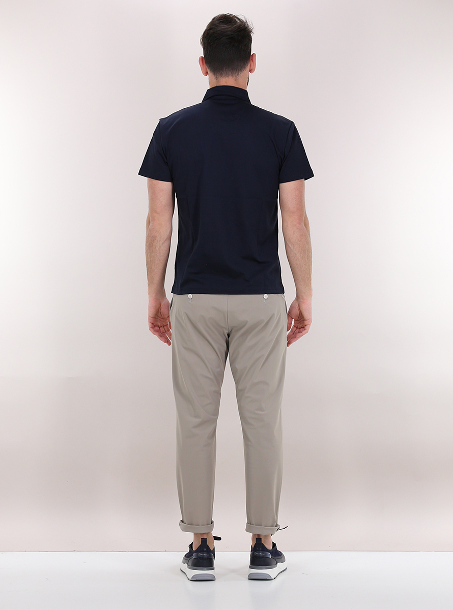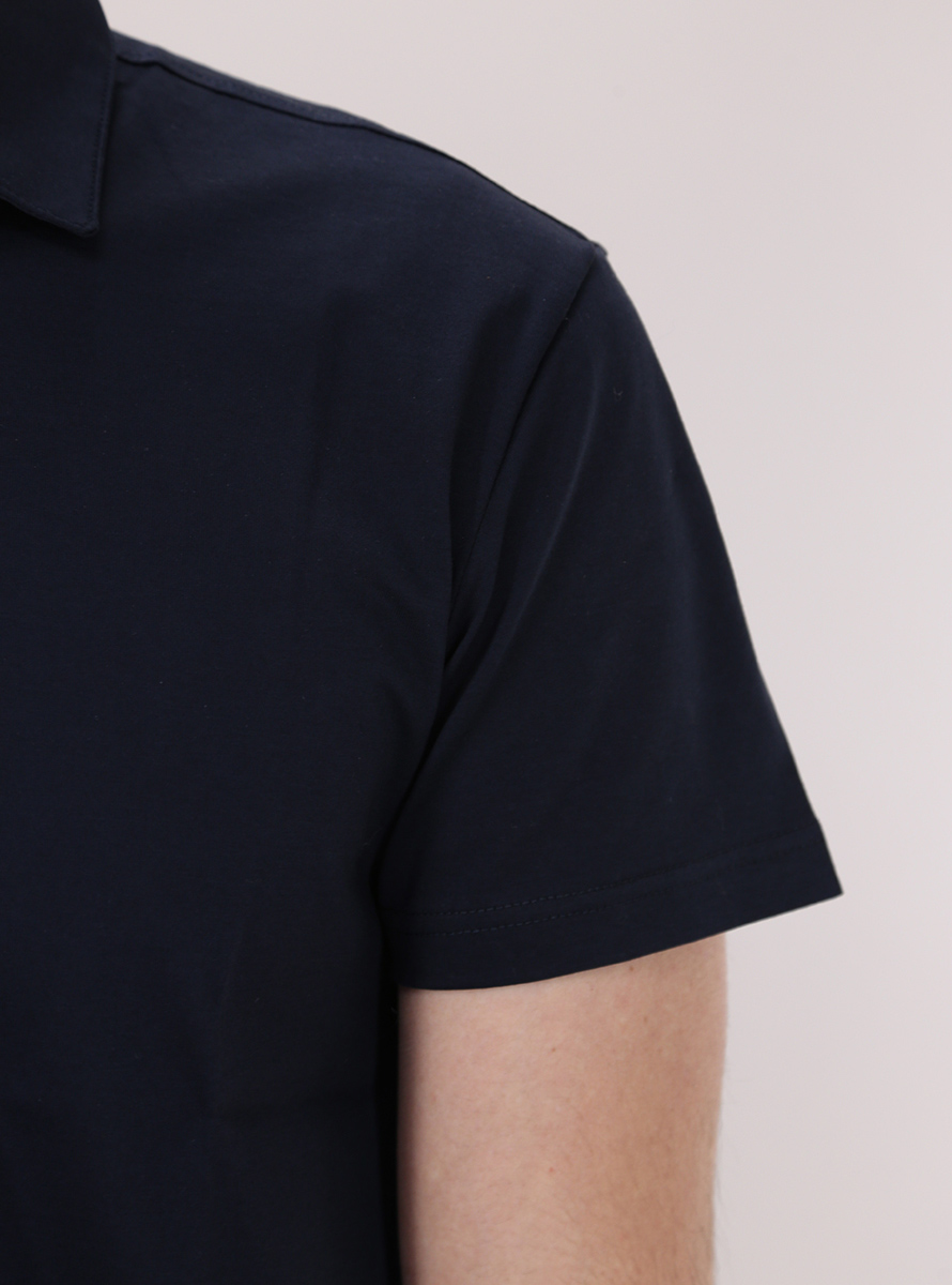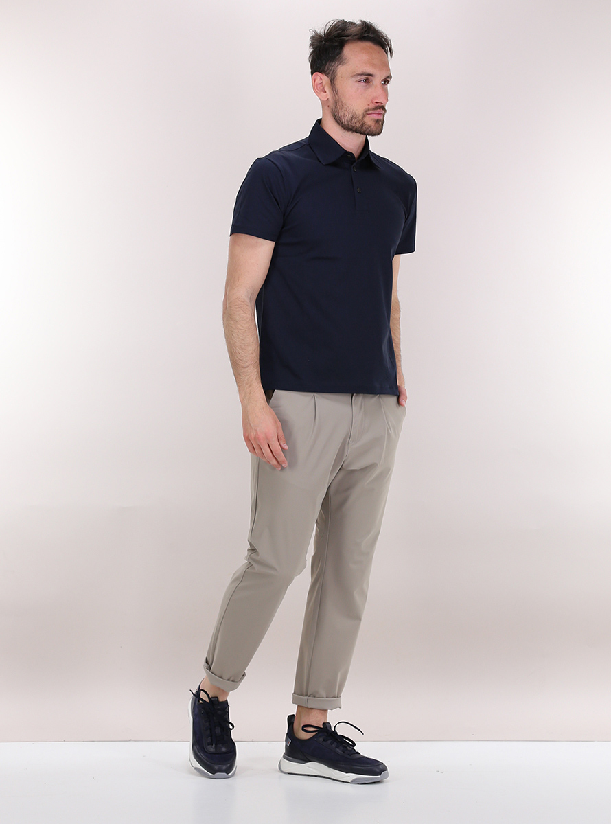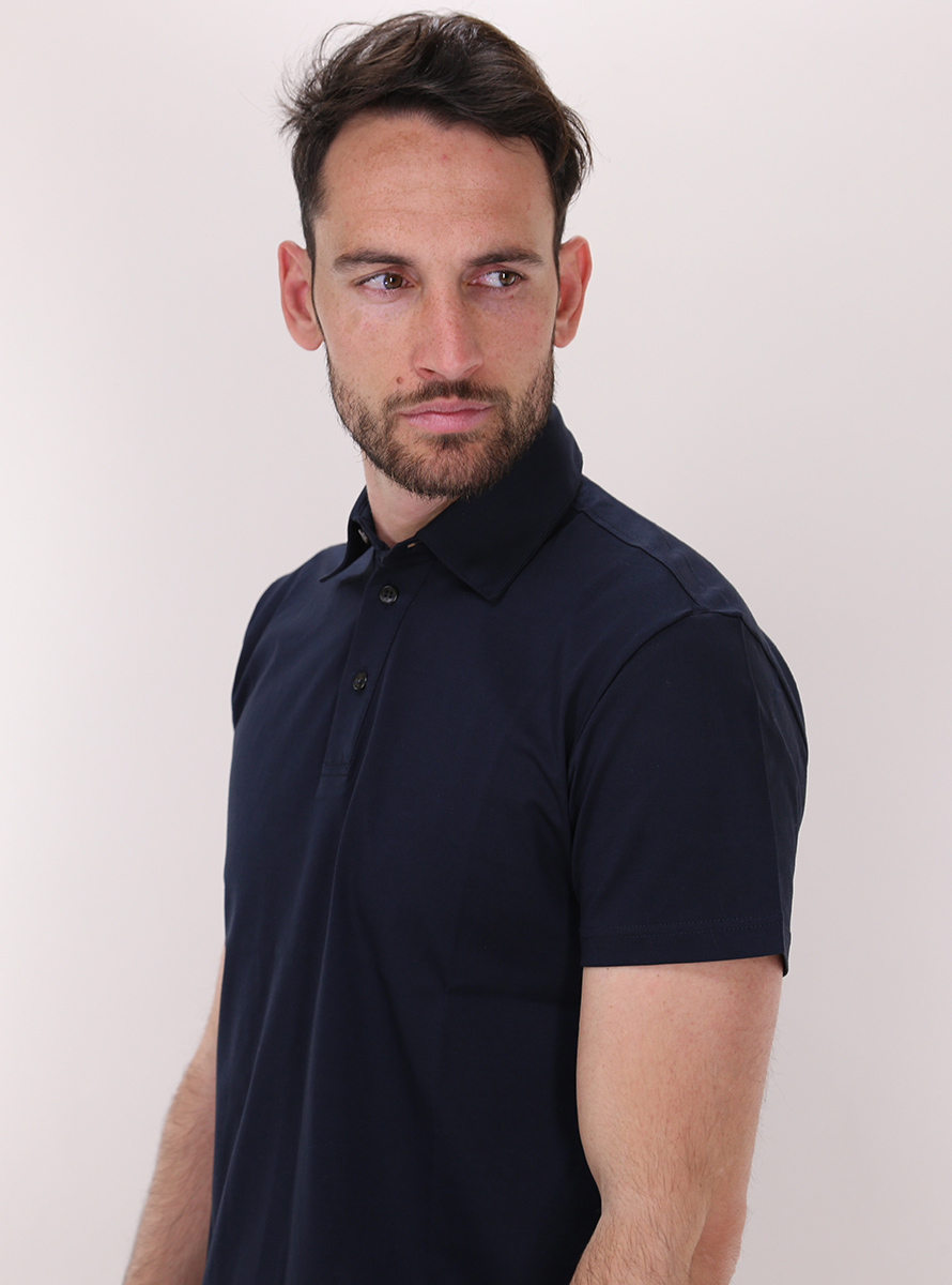 Pt polo shirt in lisle cotton with short sleeves. Three-button closure and side slits on the bottom. The model is 1.80 tall and wears size 48.