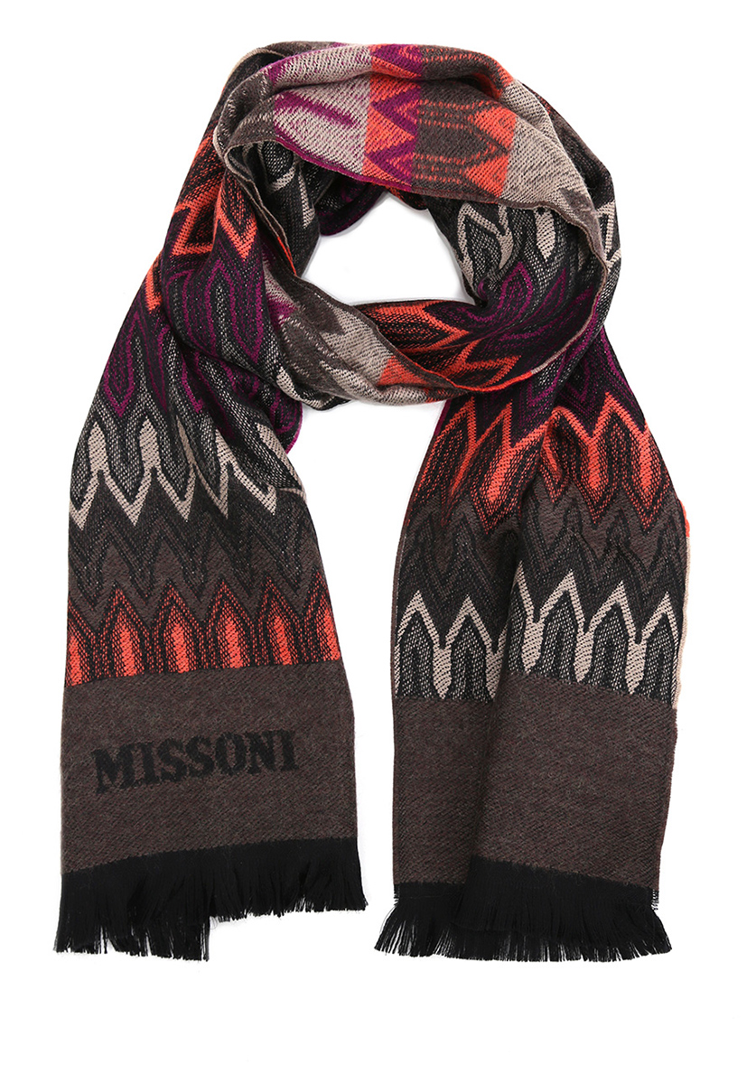 Sciarpa in lana con fondo sfrangiato. Fantasia zig zag. Misure 186 x 36 cm.