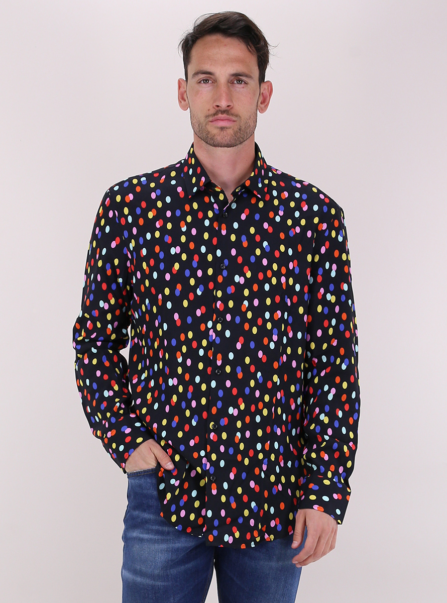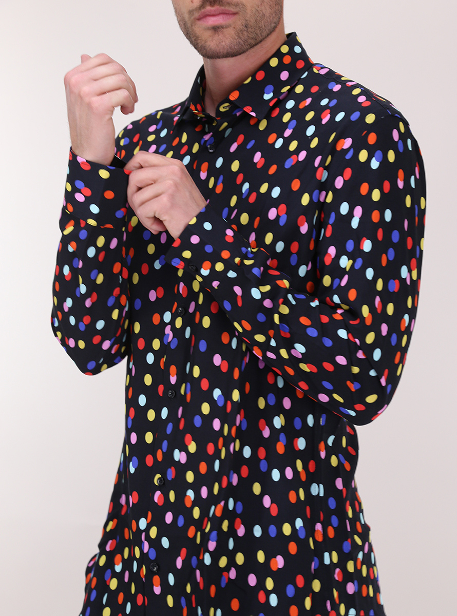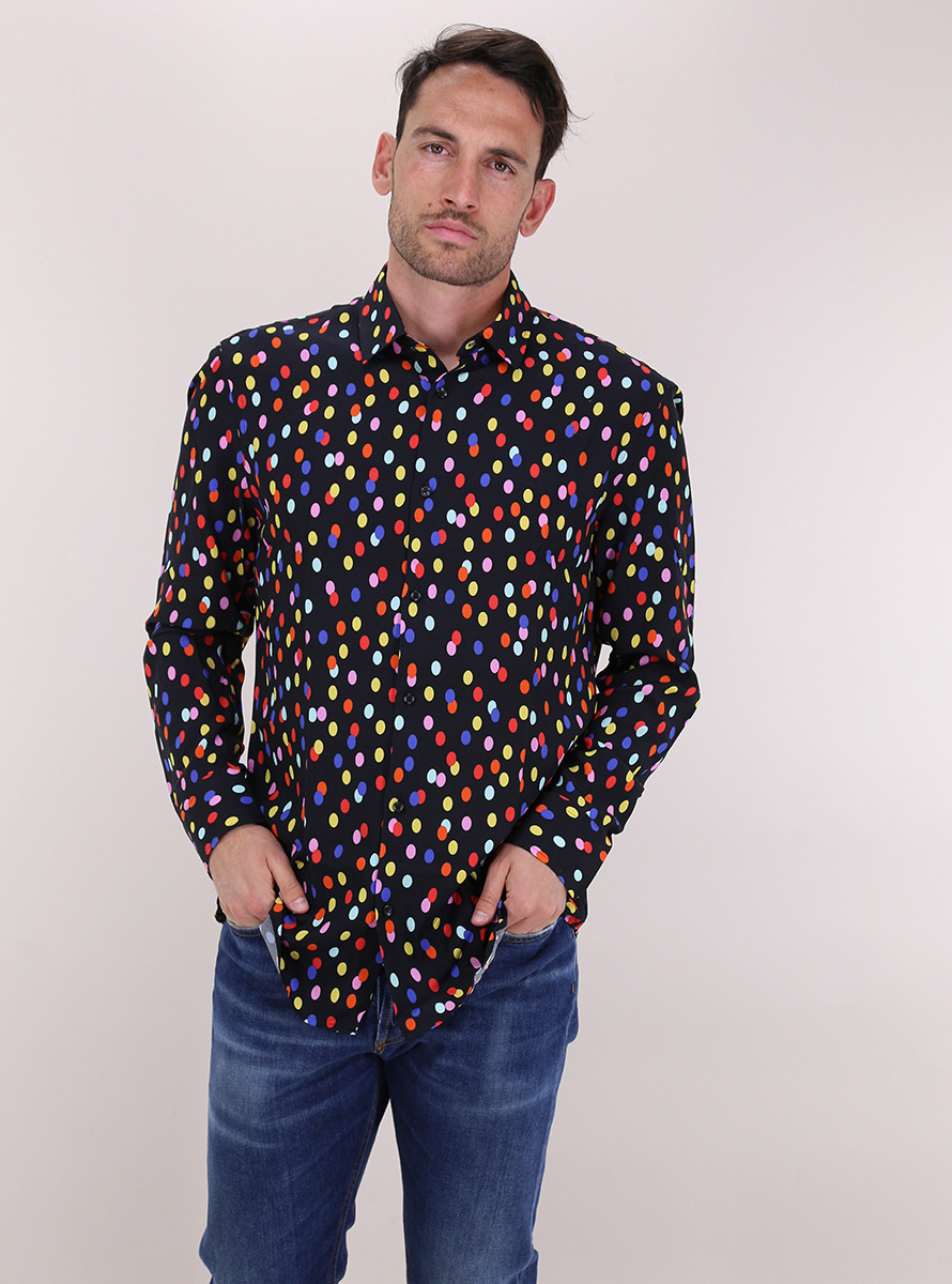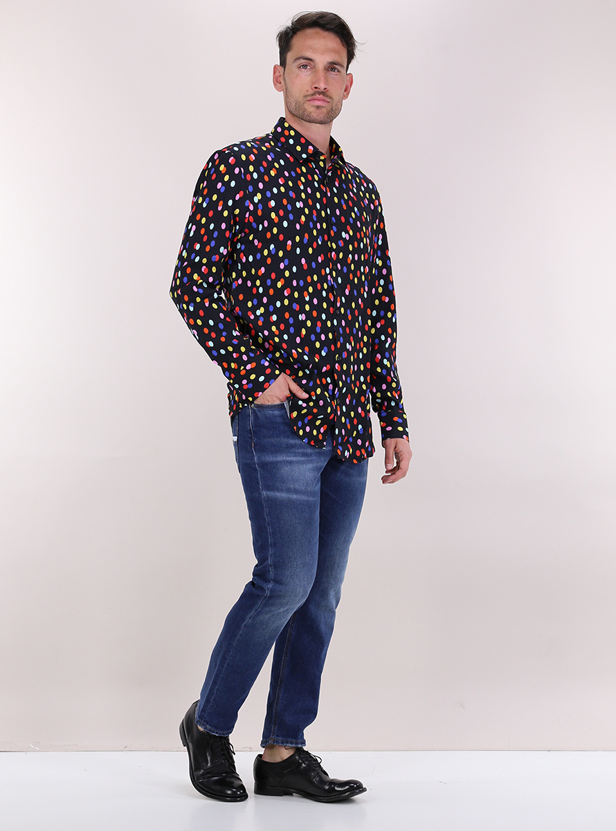 Benevierre shirt in viscose with long sleeves and classic collar. Soft fit. Multicolor fantasy. The model is 1.80 tall and wears size M.