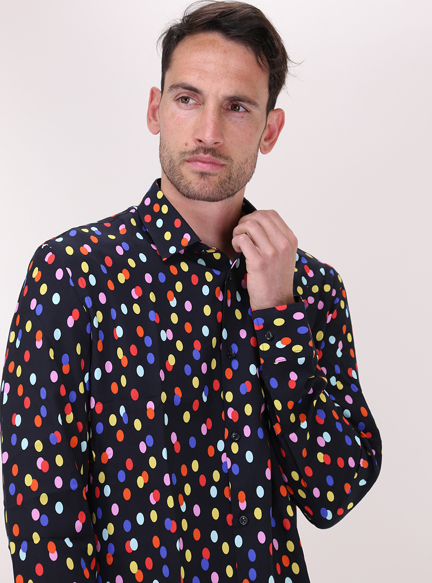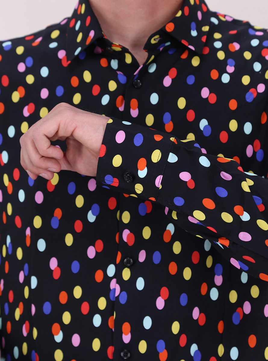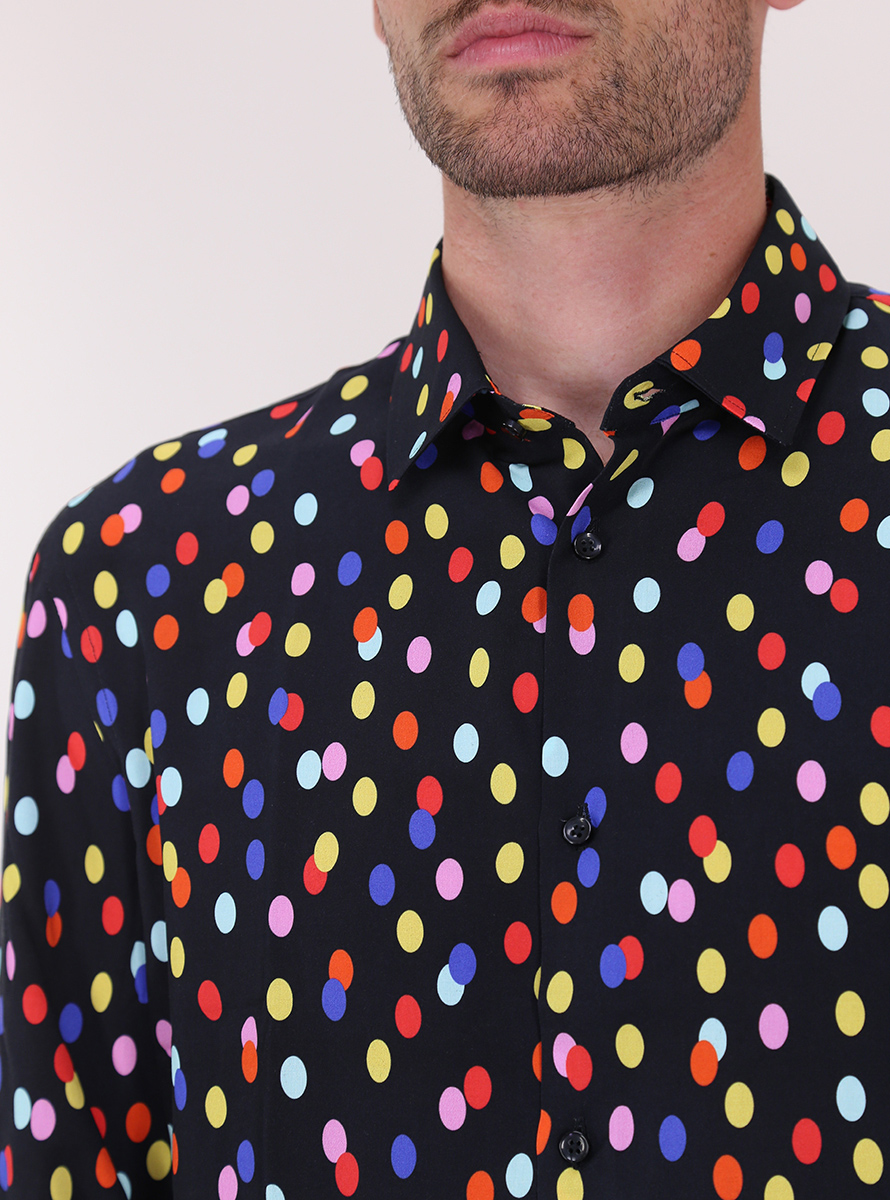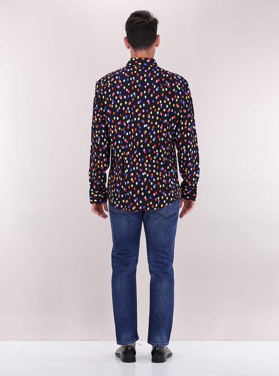 Benevierre shirt in viscose with long sleeves and classic collar. Soft fit. Multicolor fantasy. The model is 1.80 tall and wears size M.
