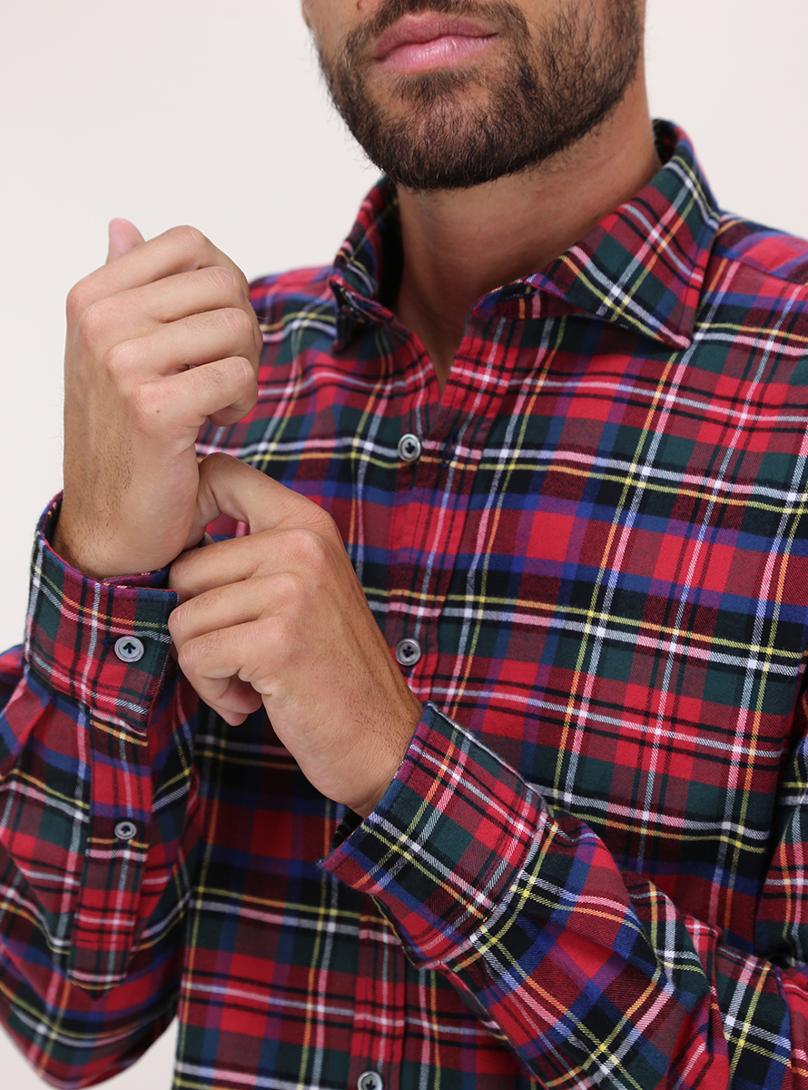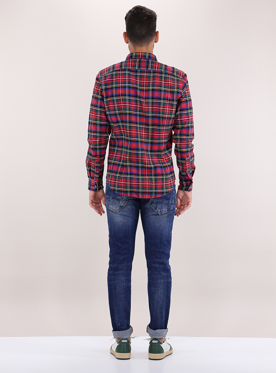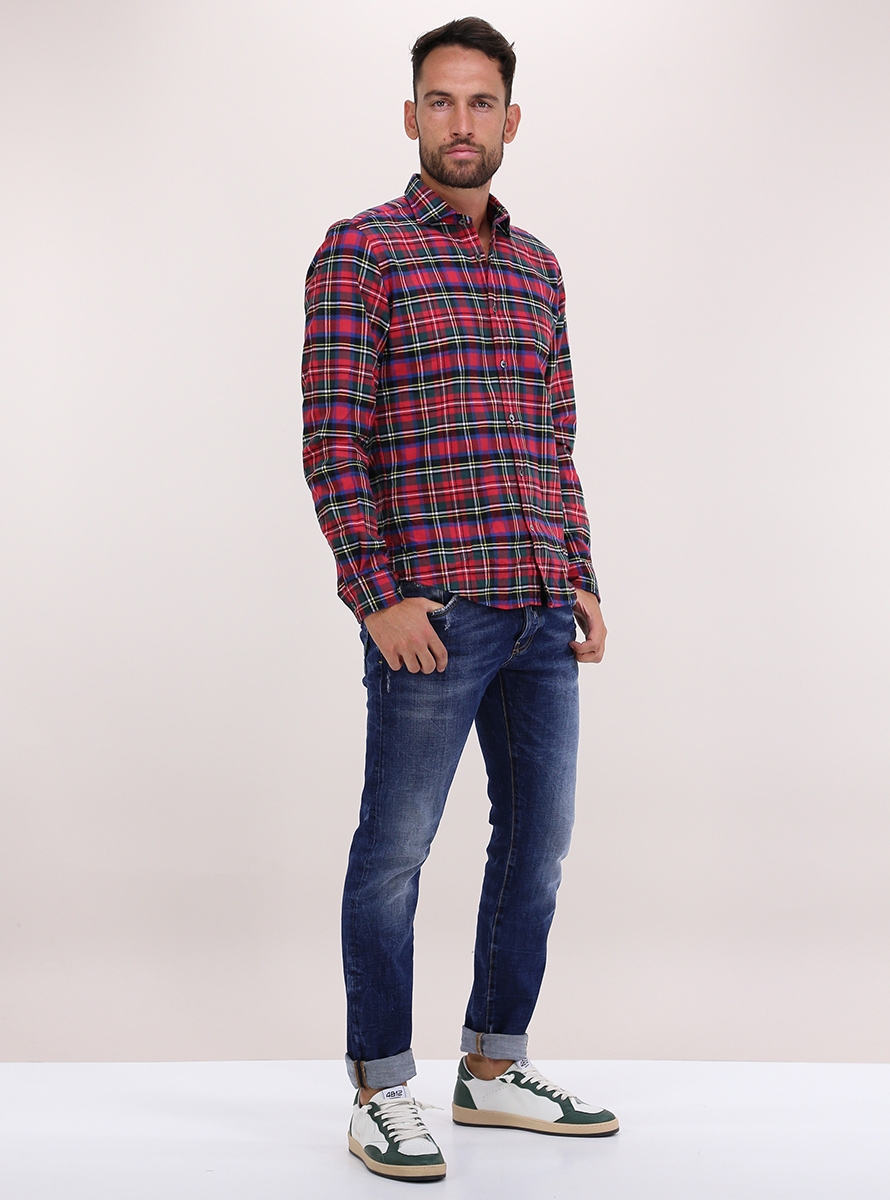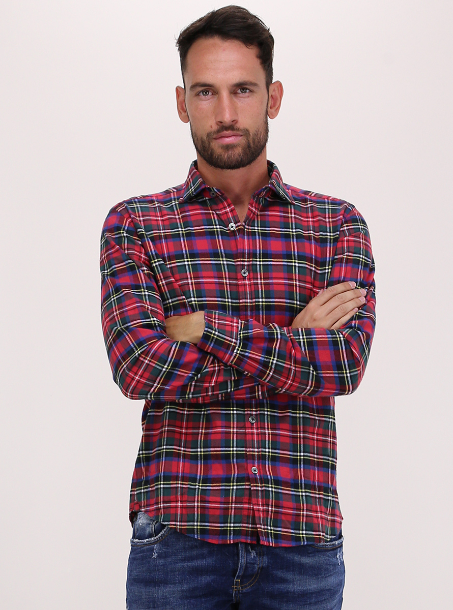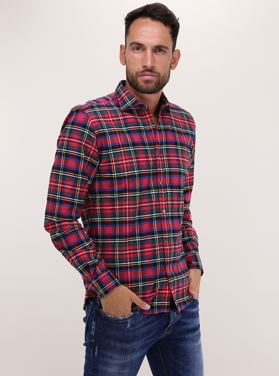 Himon's shirt in cotton with long sleeves and classic collar. Fantasy check. Slim fit. The model is 1.80 tall and wears size 40.
