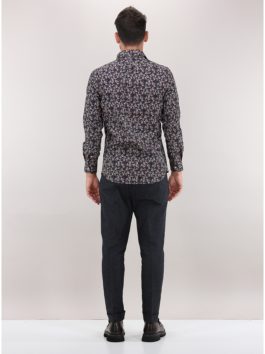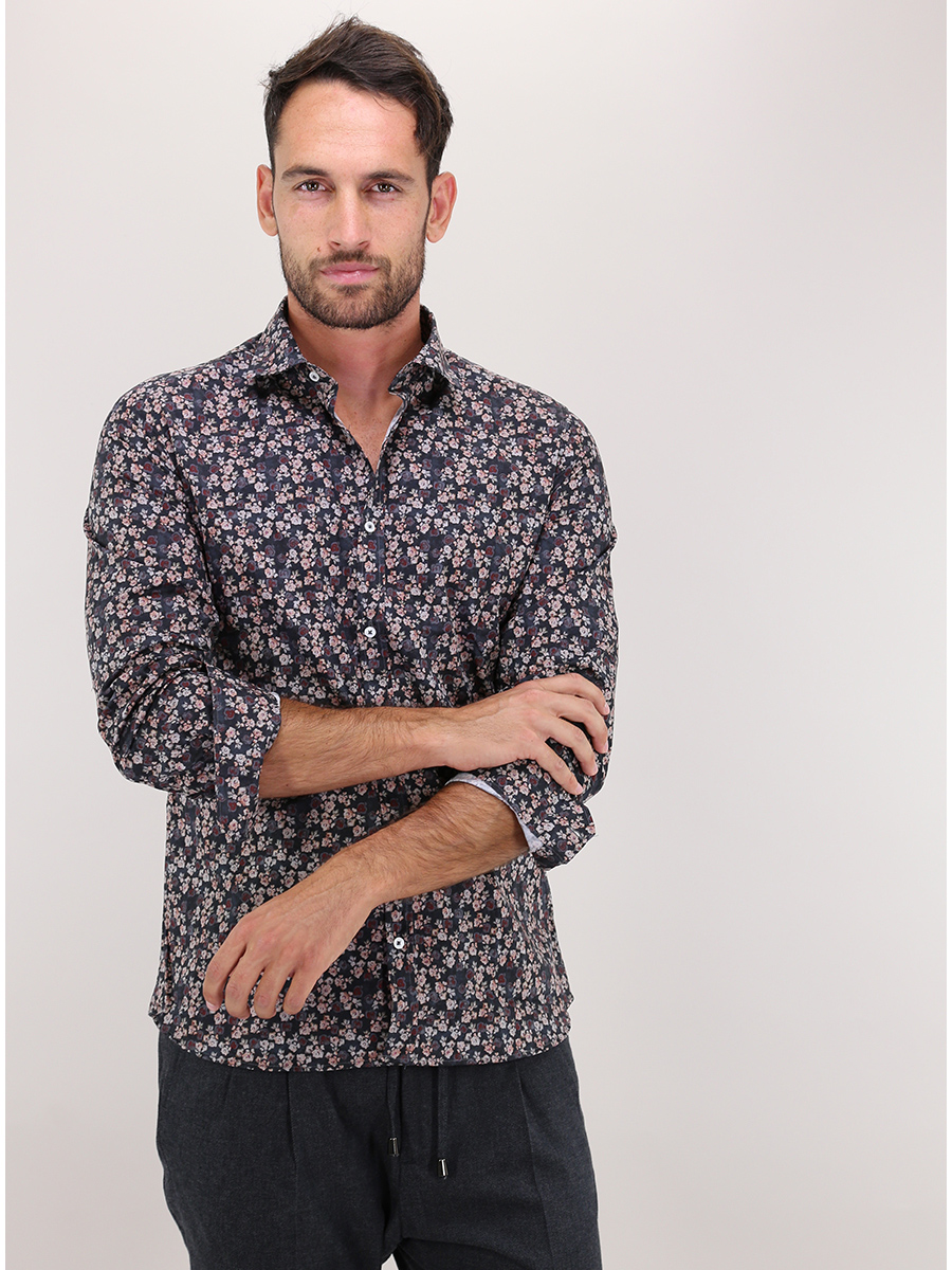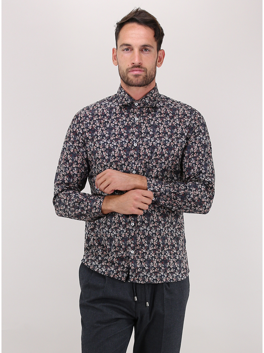 Messagerie shirt in cotton with long sleeves and classic collar. Slim fit. Floral fantasy. The model is 1.80 cm tall and wears size 40.