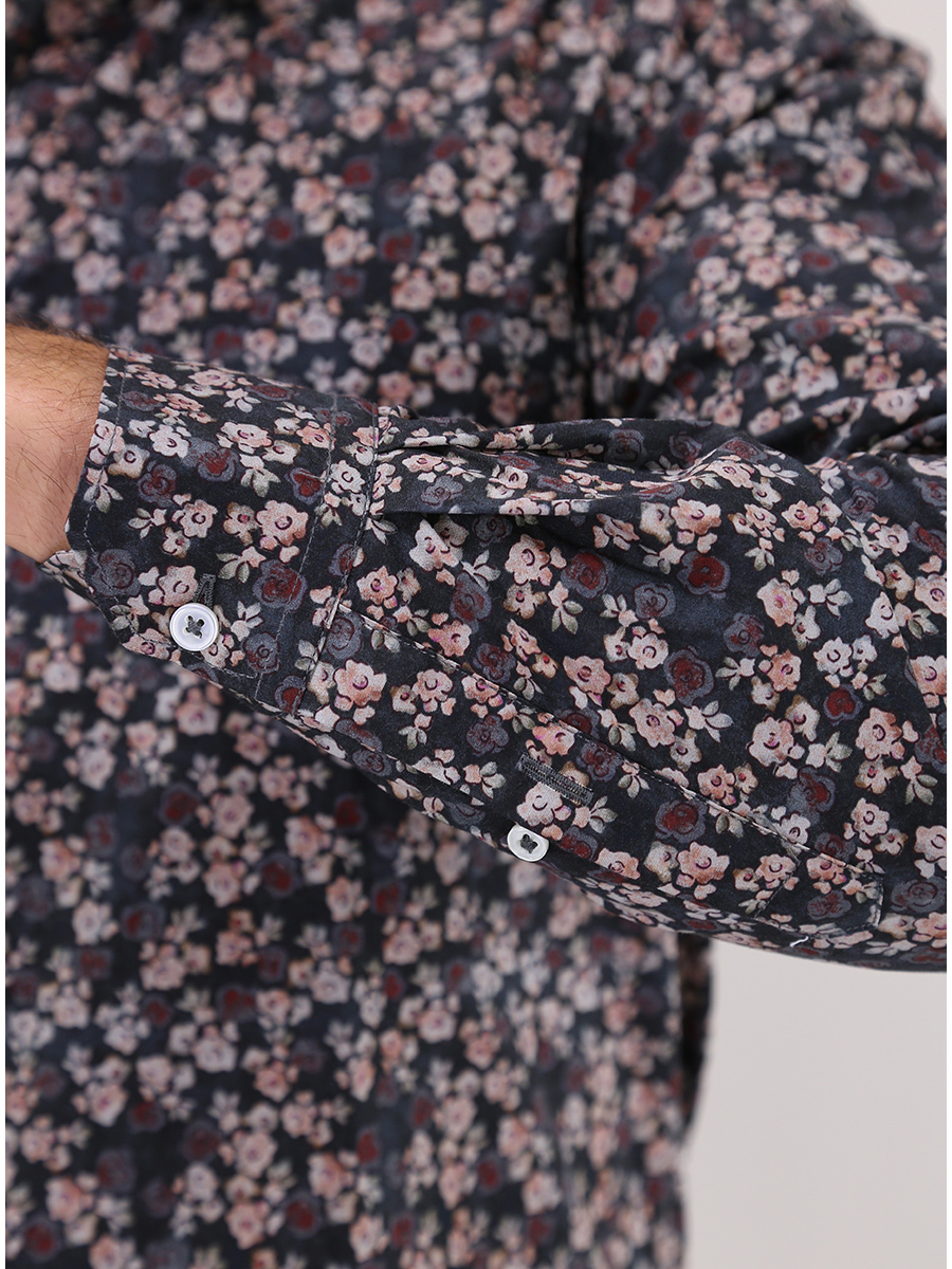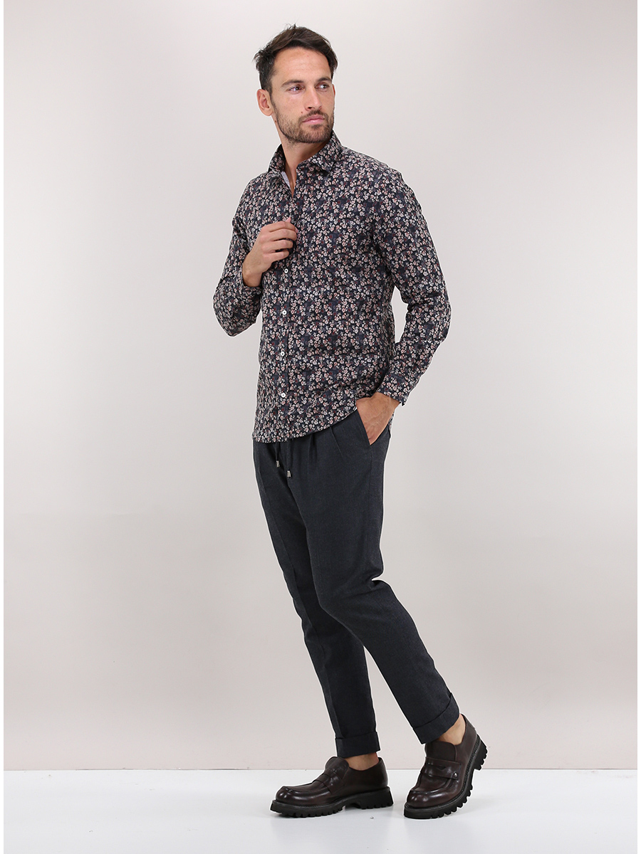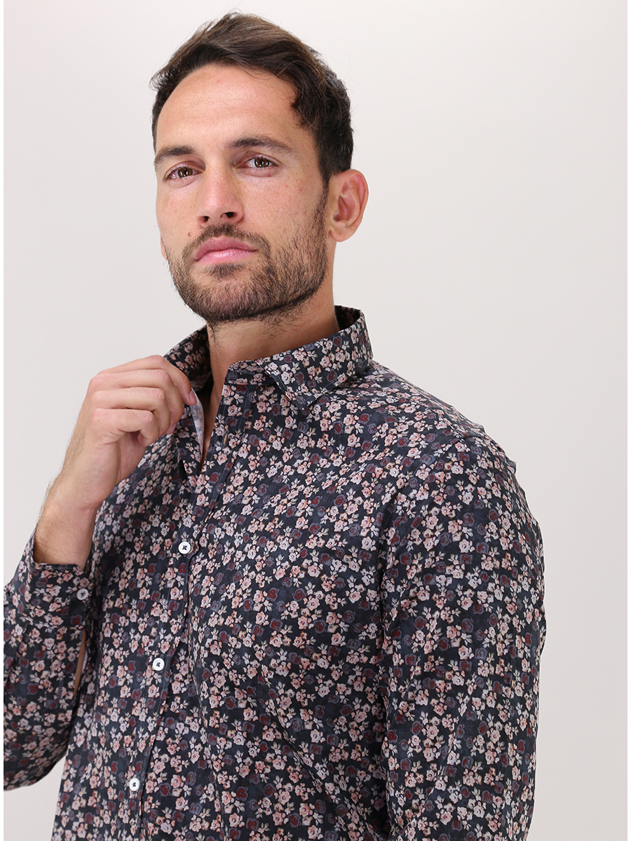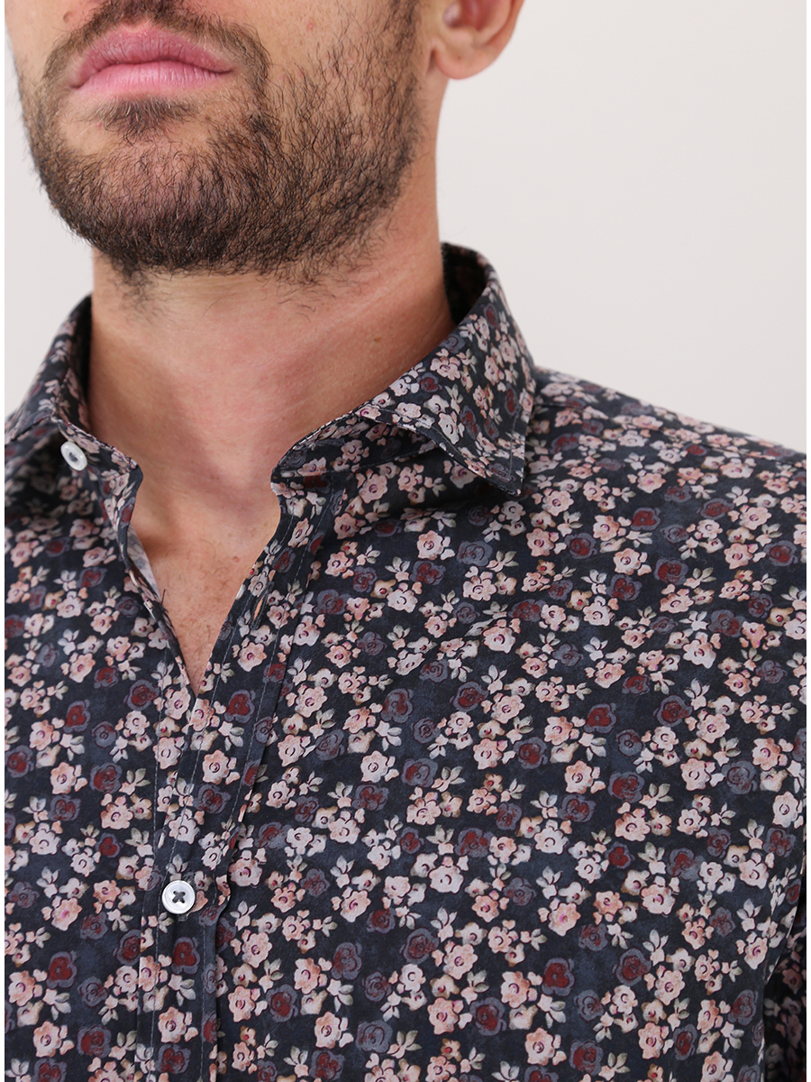 Messagerie shirt in cotton with long sleeves and classic collar. Slim fit. Floral fantasy. The model is 1.80 cm tall and wears size 40.