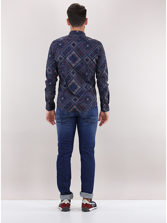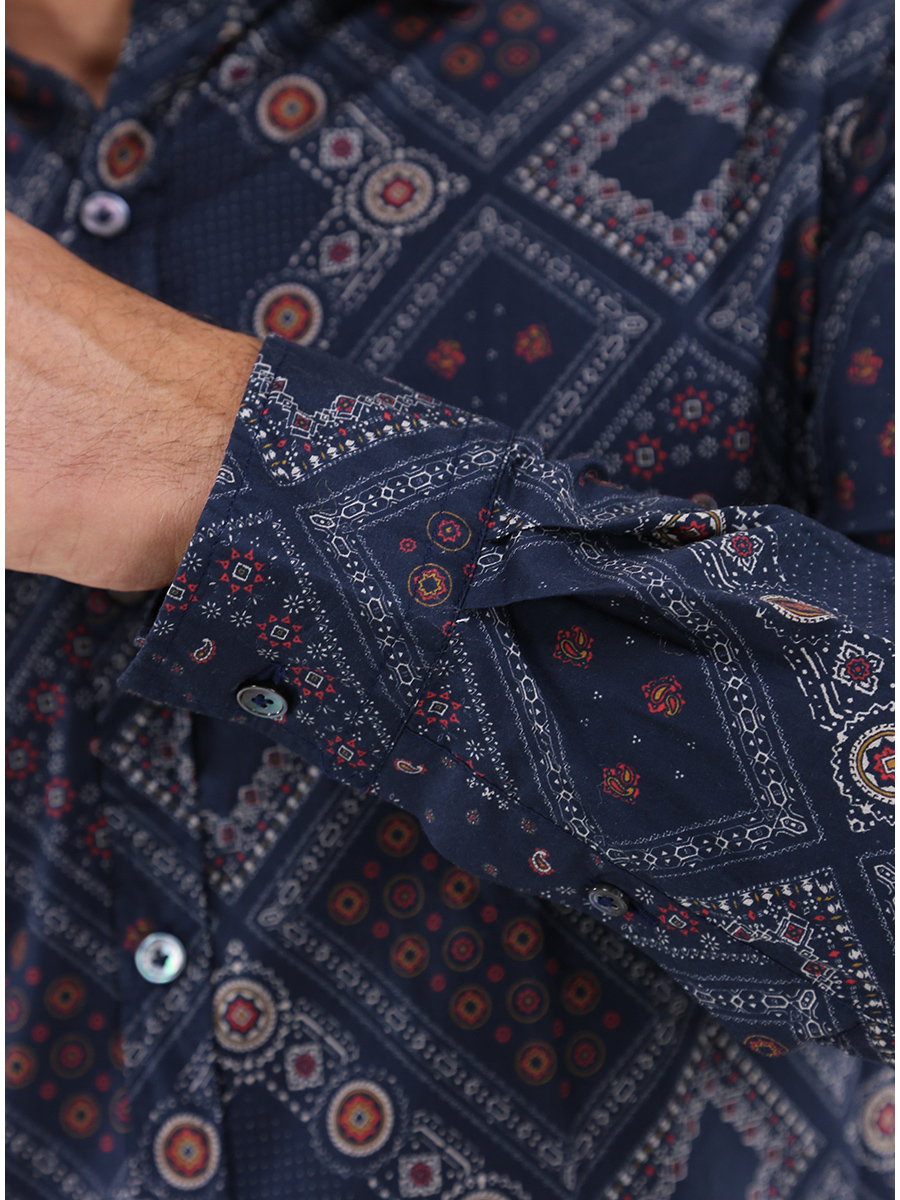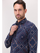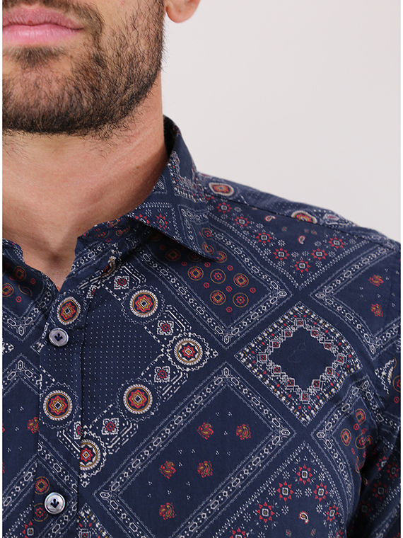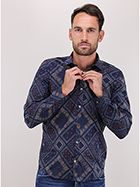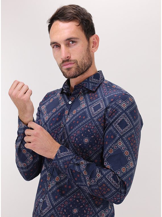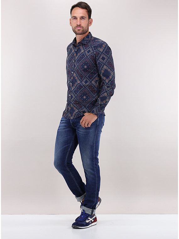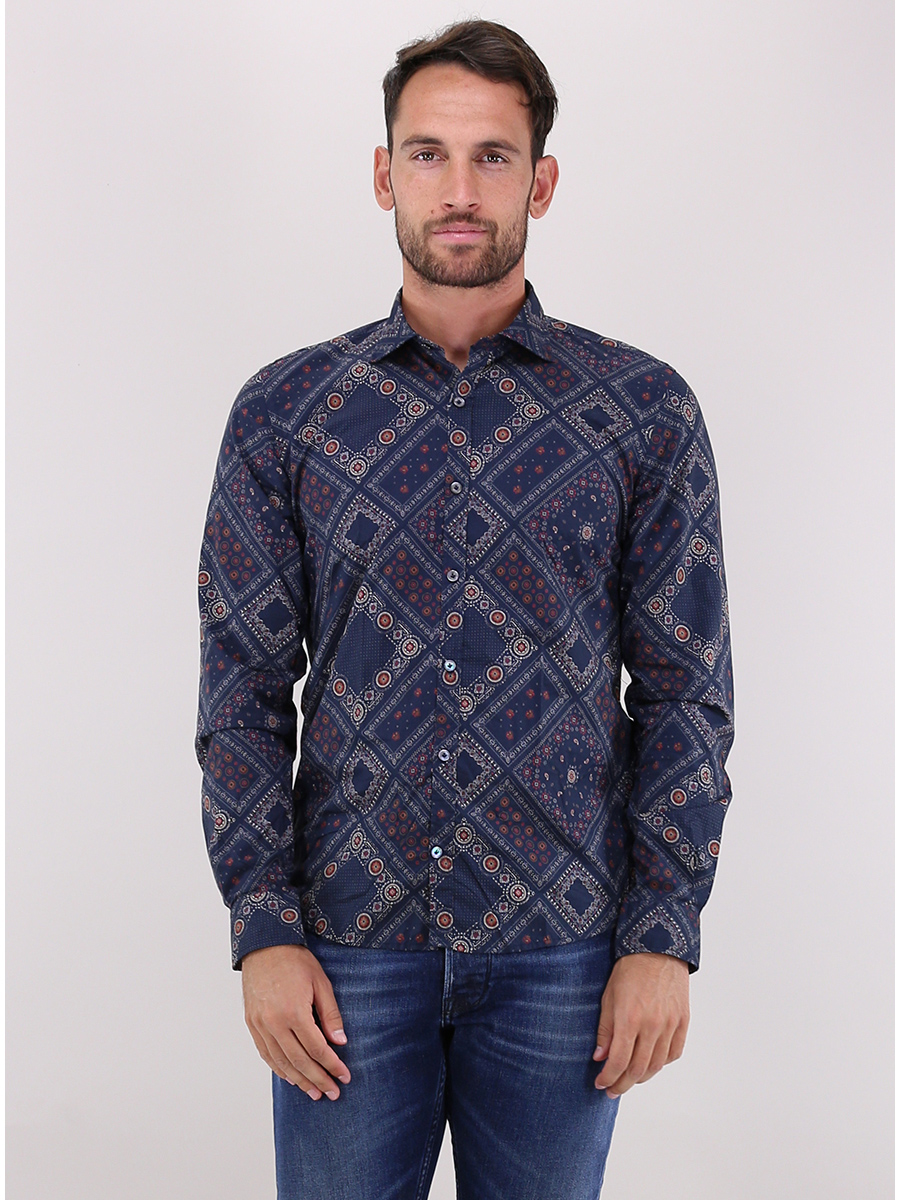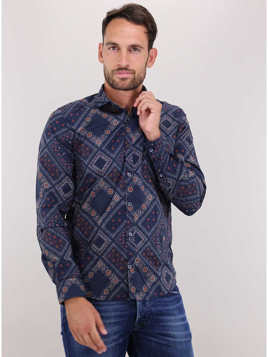 Shirt Everyone His in cotton with long sleeves and French collar. Slim fit. Damask pattern. The model is 1.75 cm tall and wears size 40.