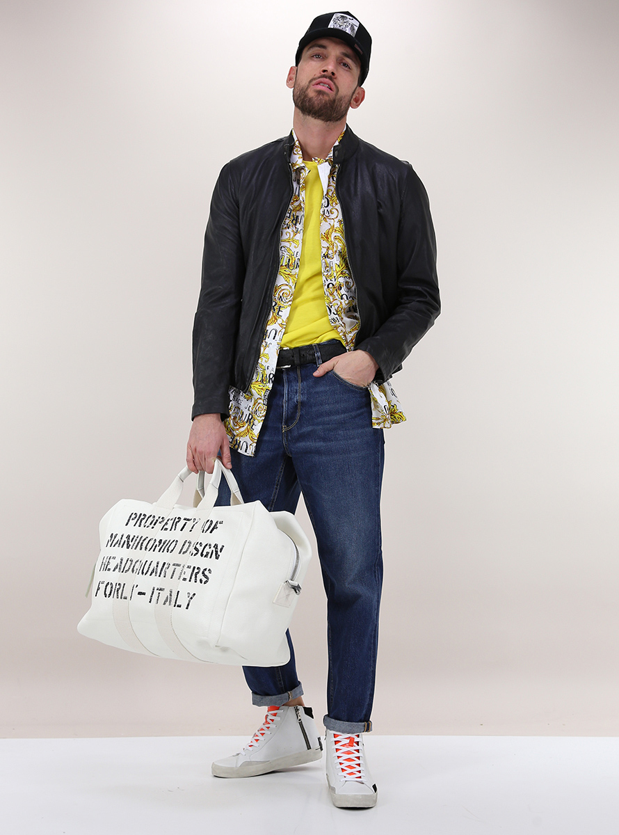 : Pattern, Multicolour pattern, Logo, Single chest pocket