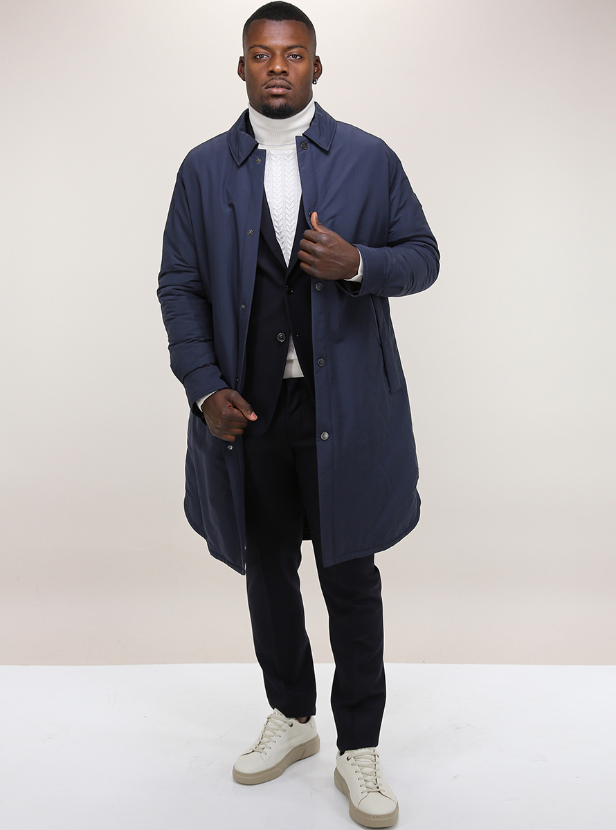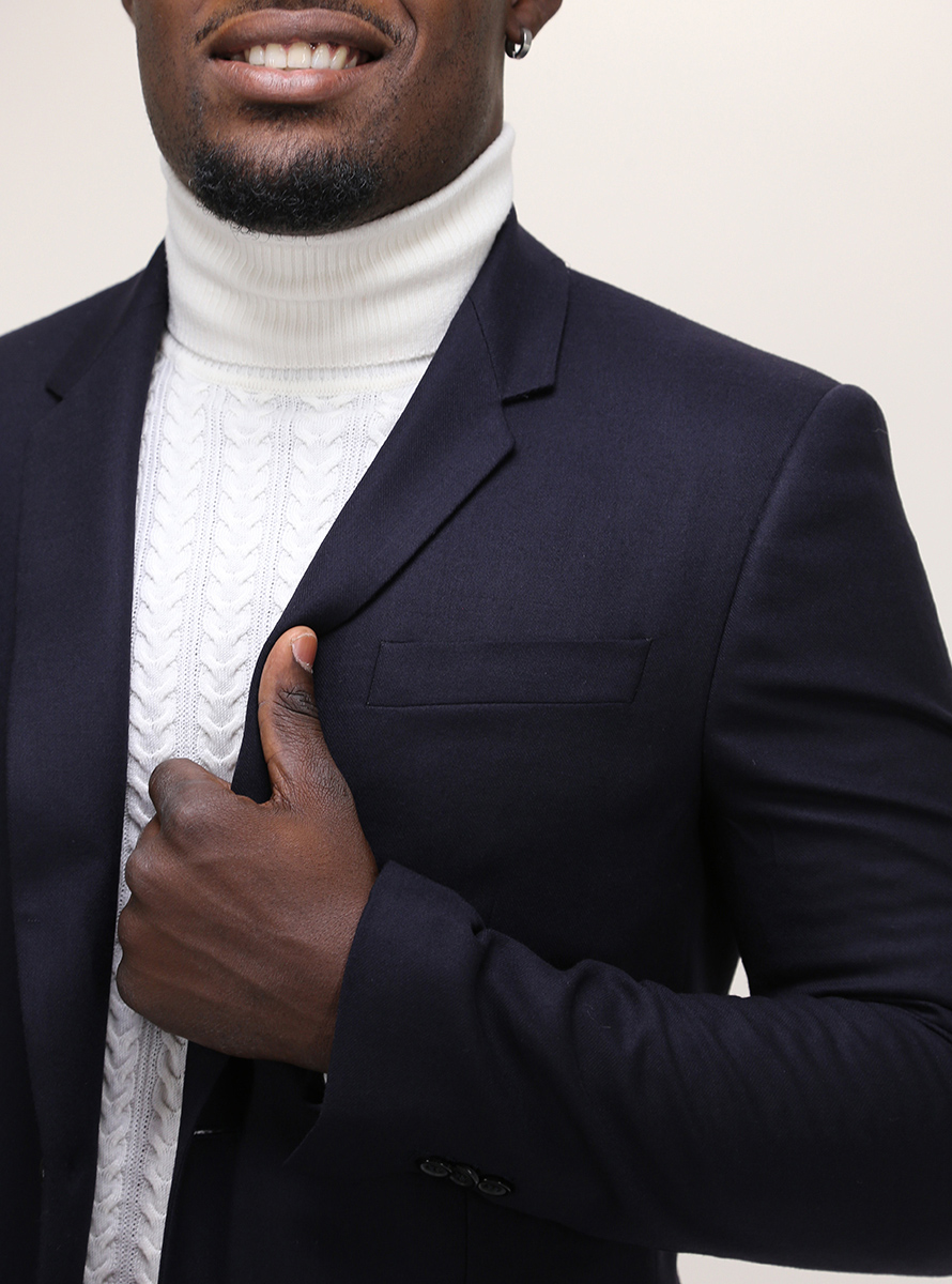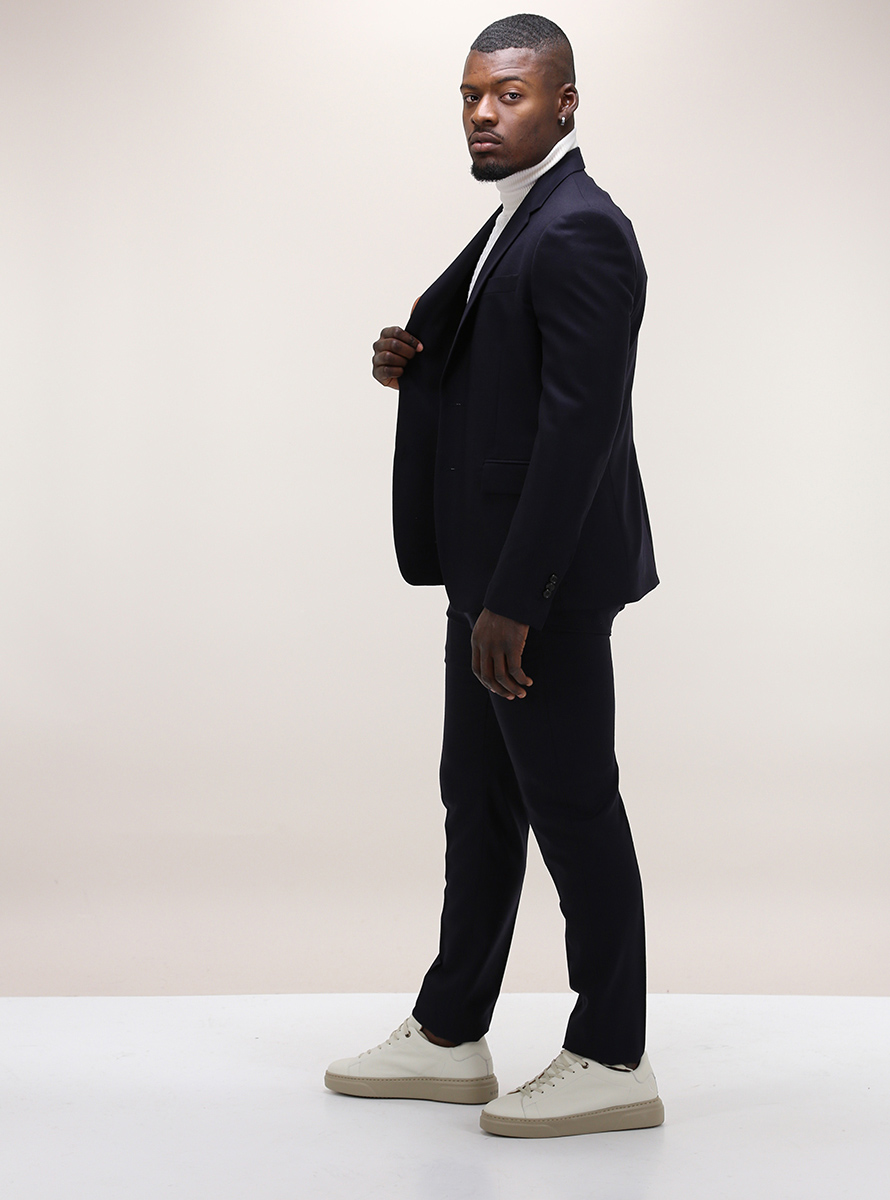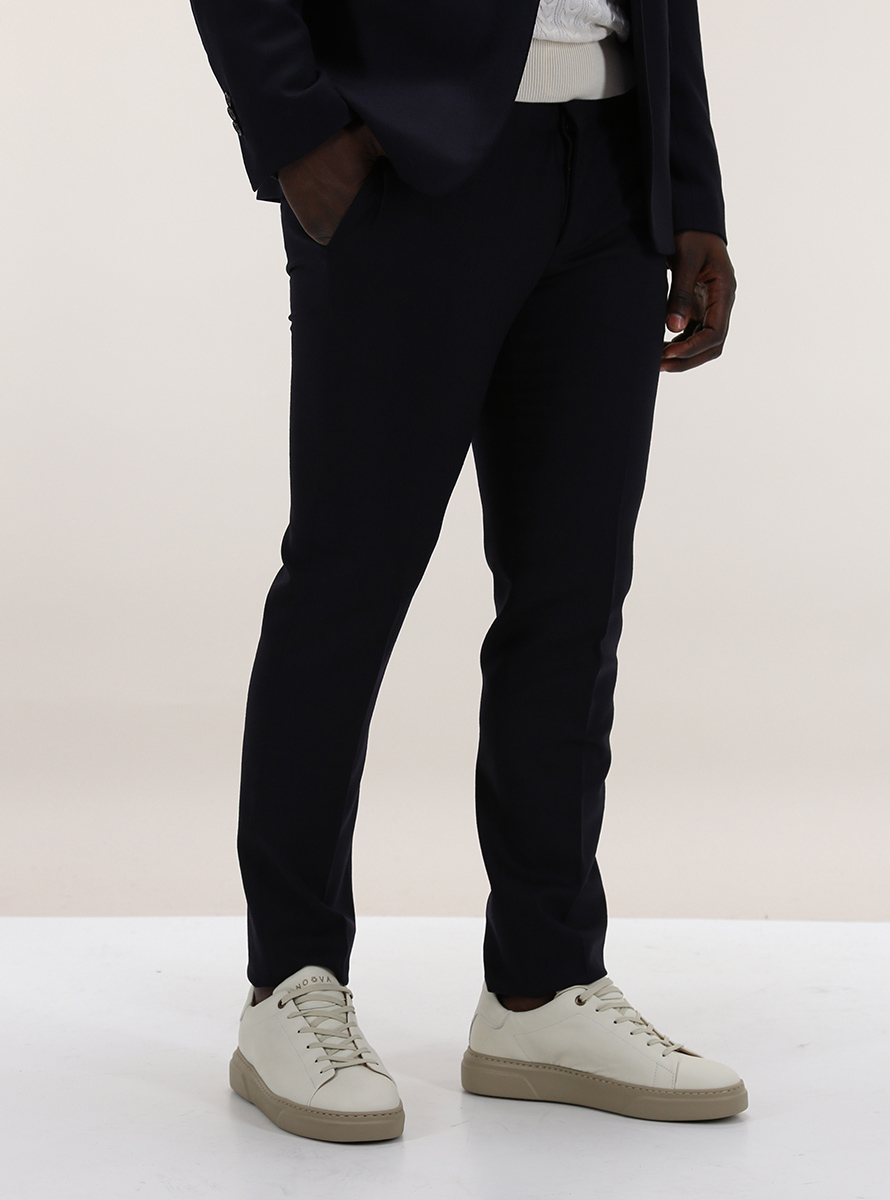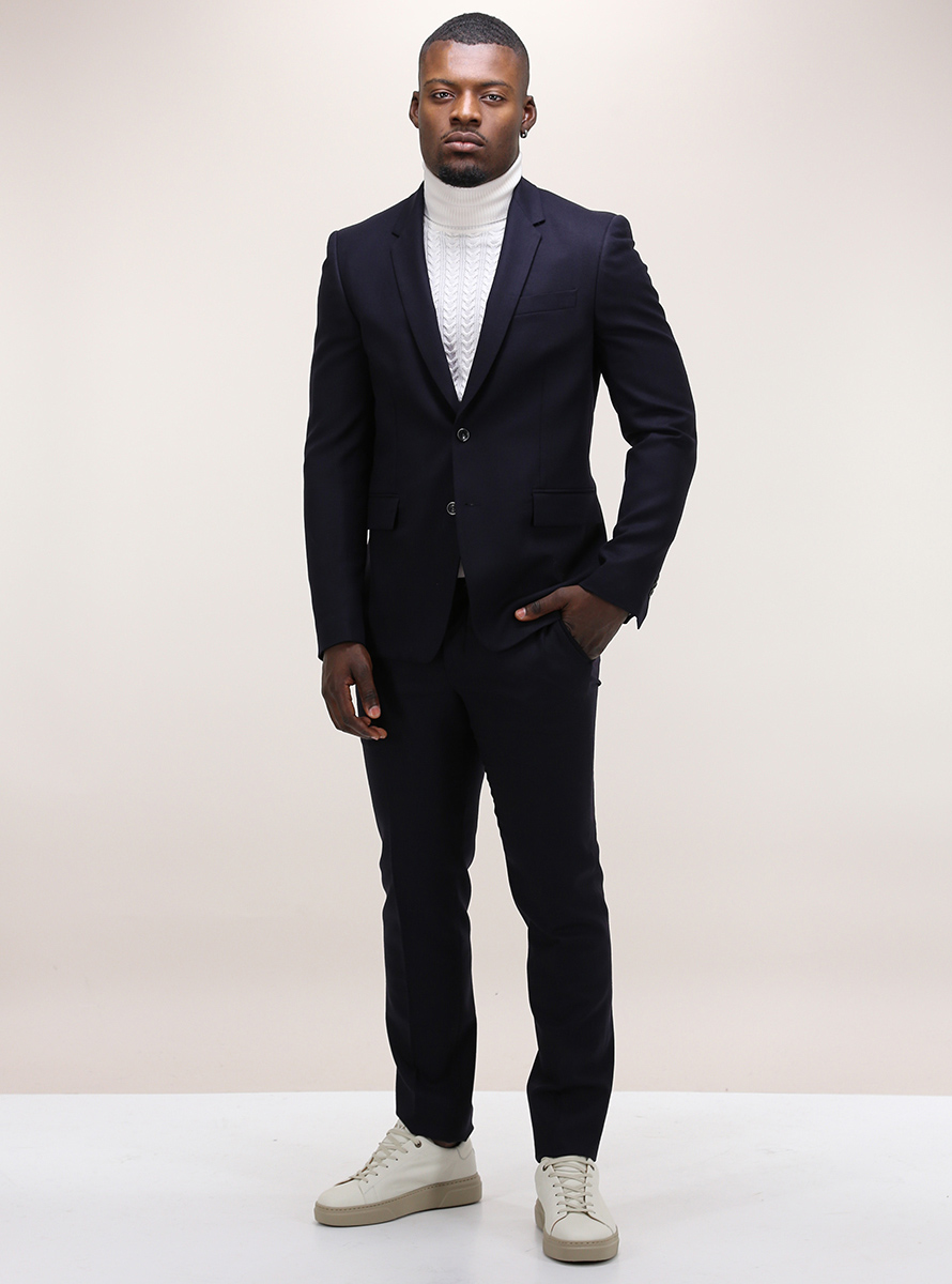 Grifoni suit in stretch wool. Long-sleeved jacket with buttons and lapel collar. Pockets with flap and two-button closure. Single vent on the back. Trousers with front patch pockets and welt pockets on the back. Closing buttons. Slim fit. The model is 1.78 tall and wears size 50.