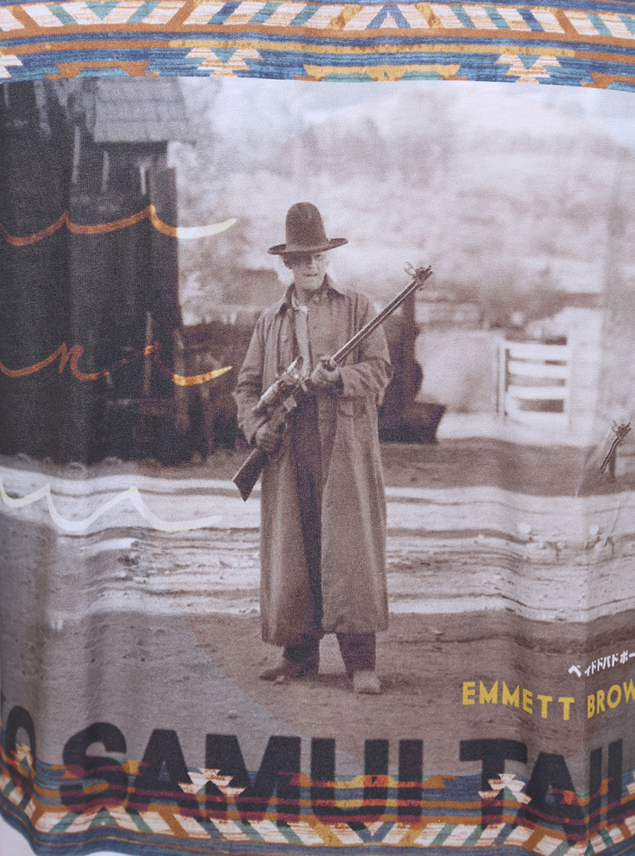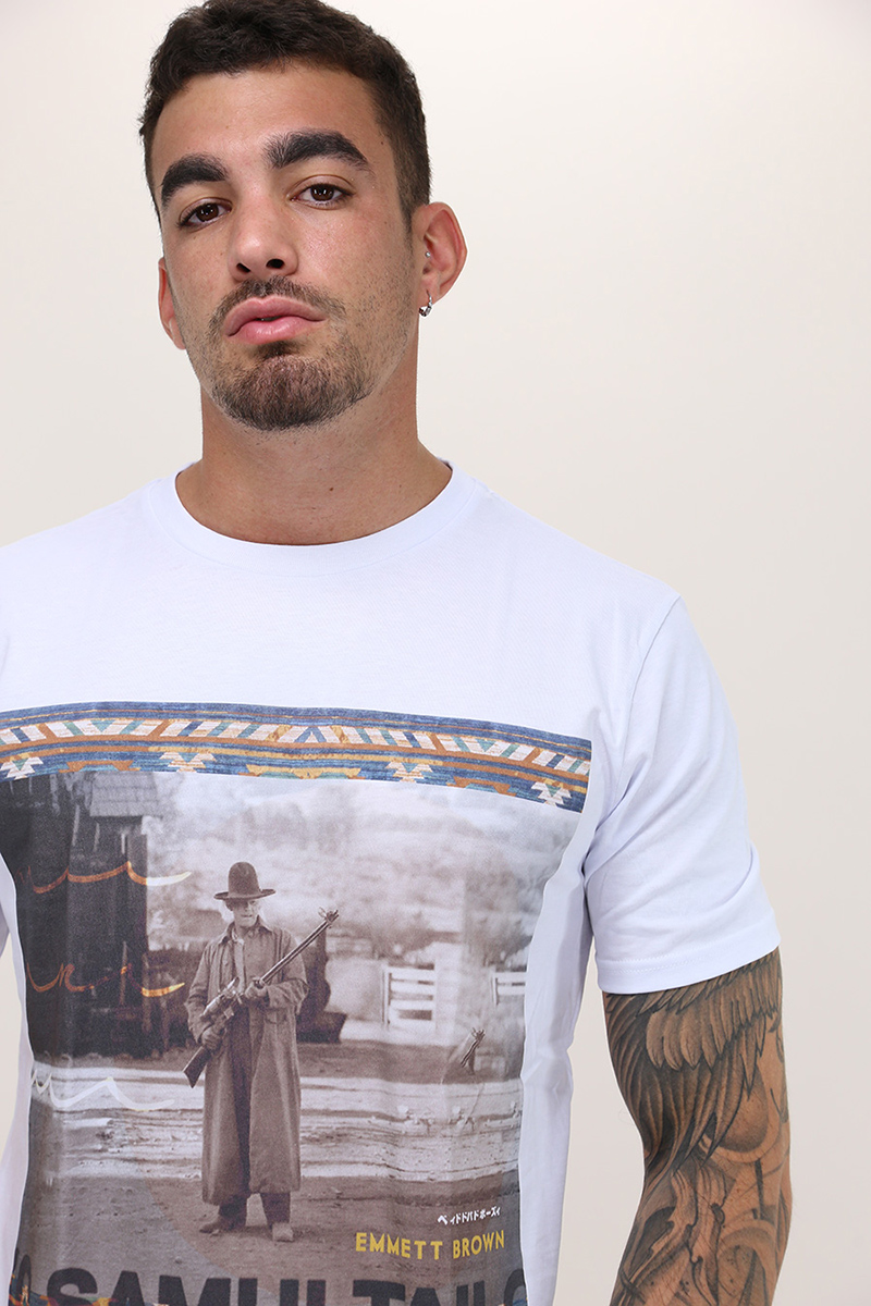 KO Samui cotton t-shirt with short sleeves and round neck. Emmett Brown front print. The model is 1.75 tall and wears size L.