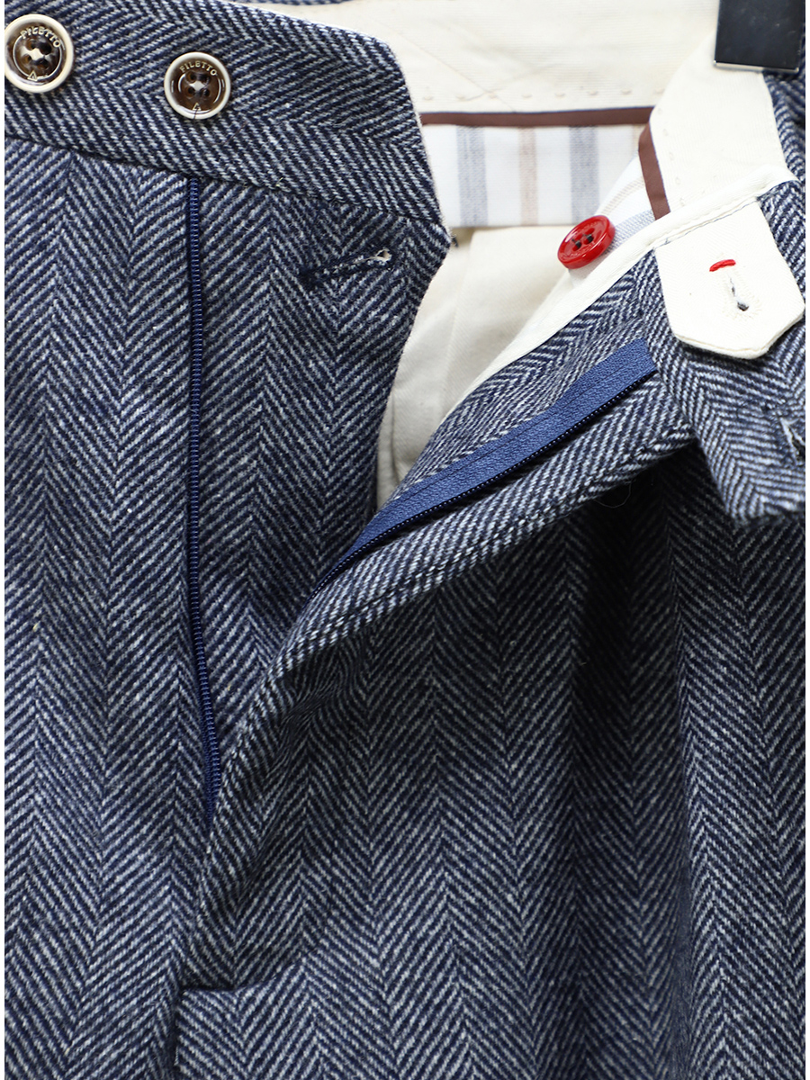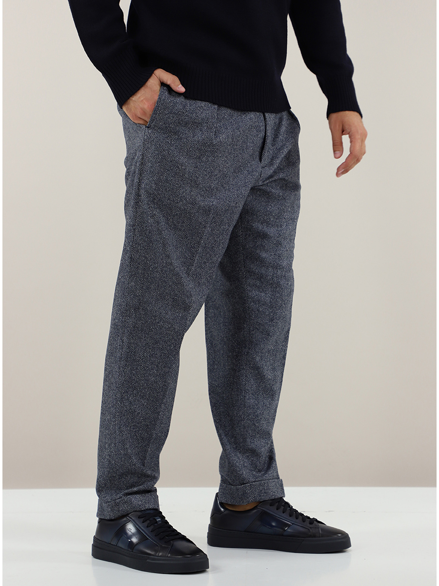 : Turn-up on the bottom, Waist pinces, Pattern, Zip