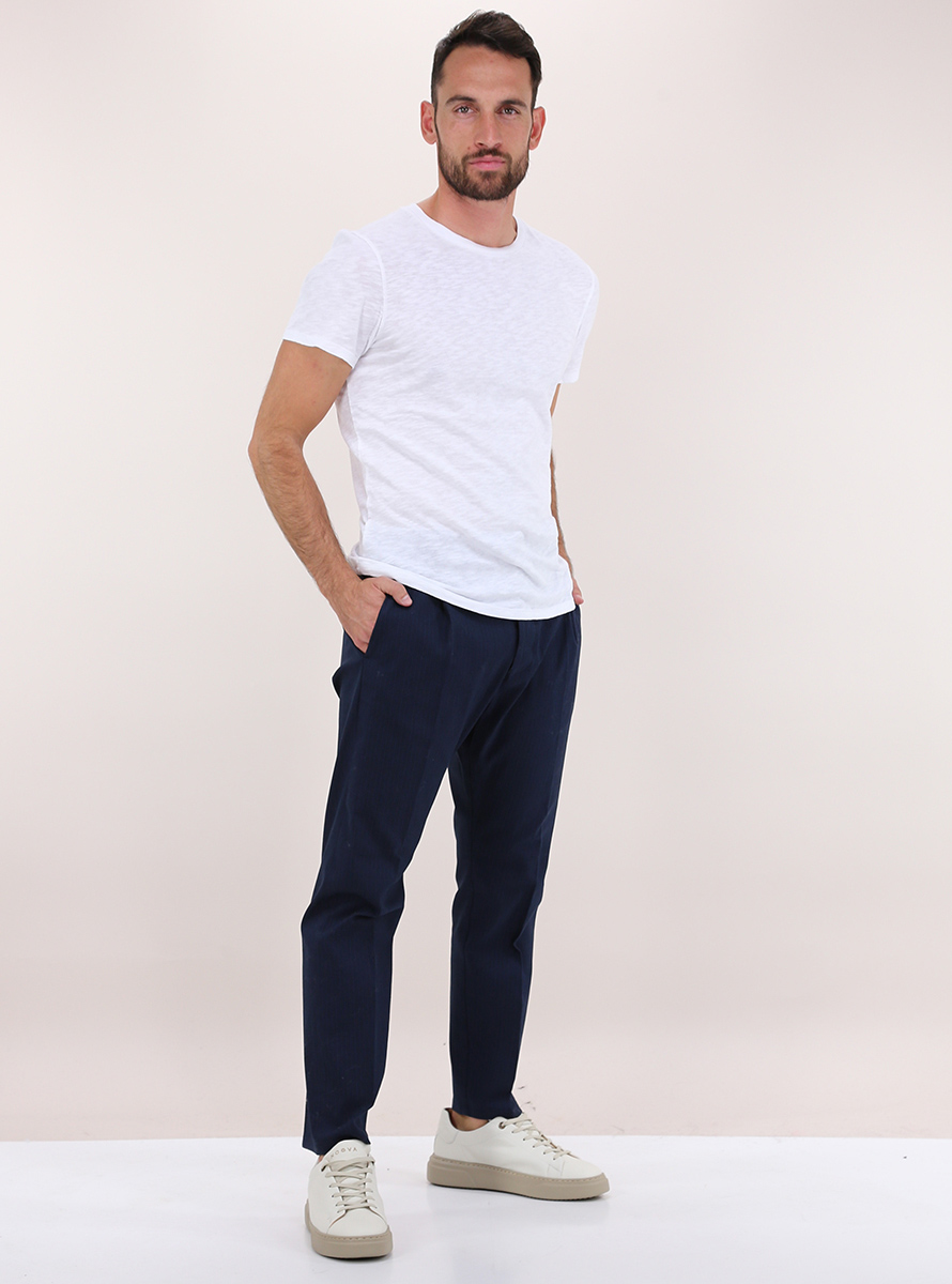 Messaggerie trousers in stretch cotton velvet baggy fit. Front pleats and martingale at the waist. Side slash pockets and back welt pockets. Flounce at the bottom. The model is 1.80 tall and wears size 52.