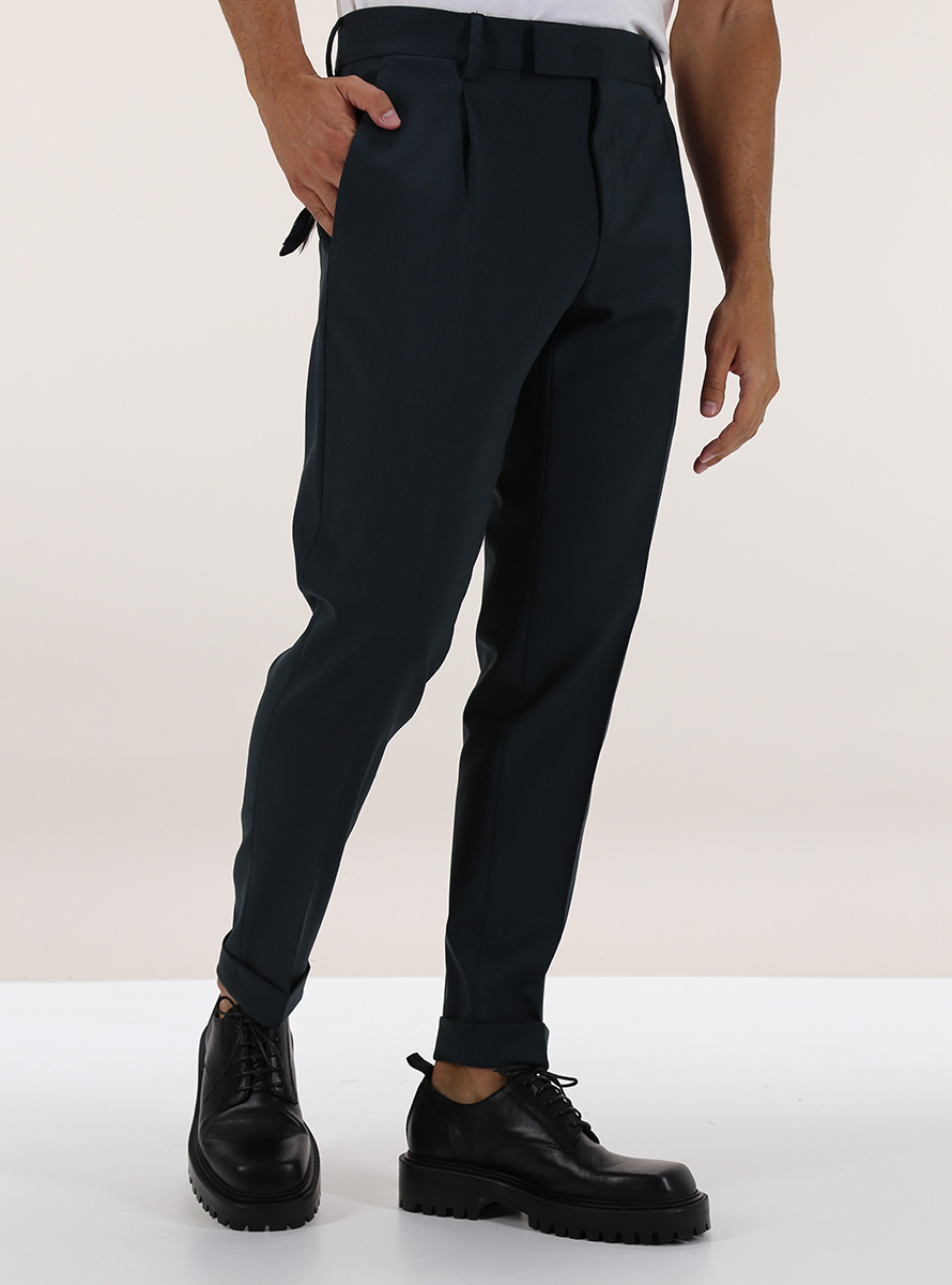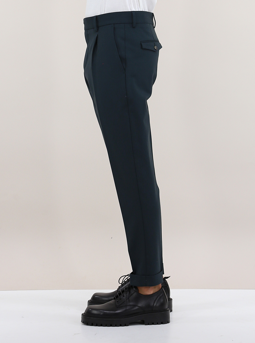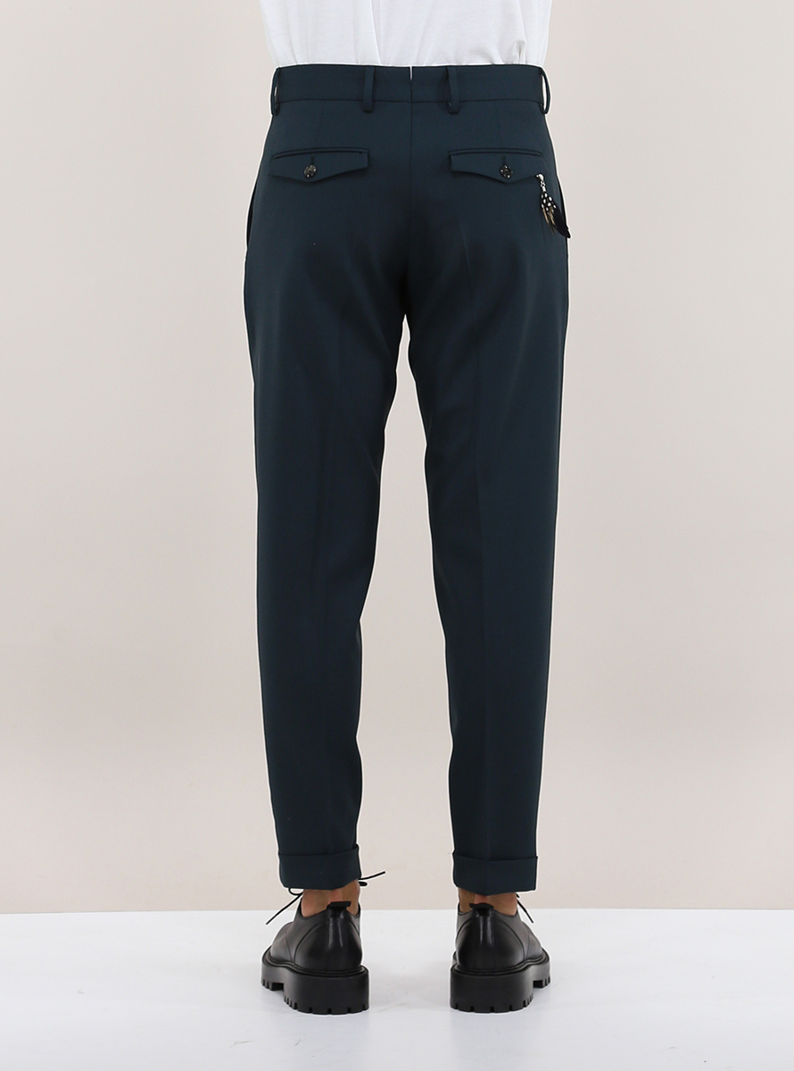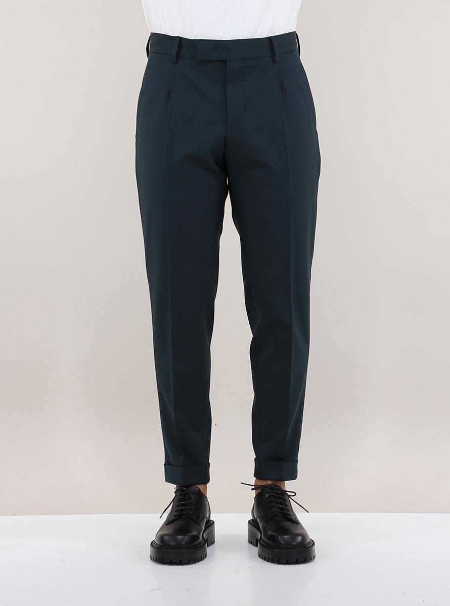 PT trousers in stretch wool blend. Front slash pockets and back flap pockets. Pences and hook closure. Bottom with 4cm turn-up. Regular fit. The model is 1.80 tall and wears size 46.