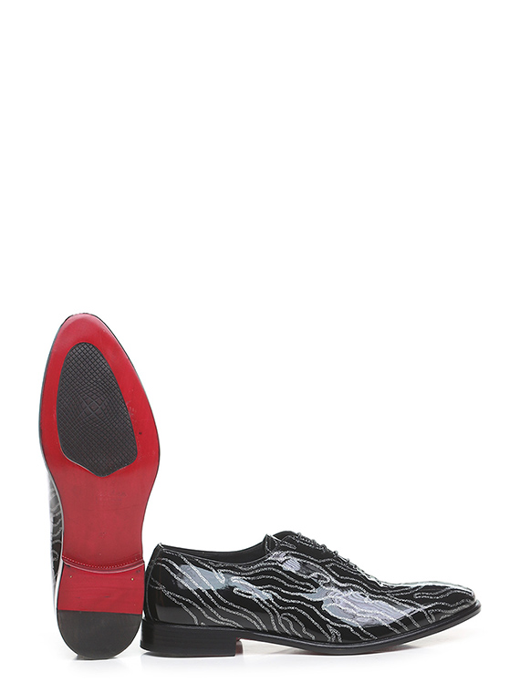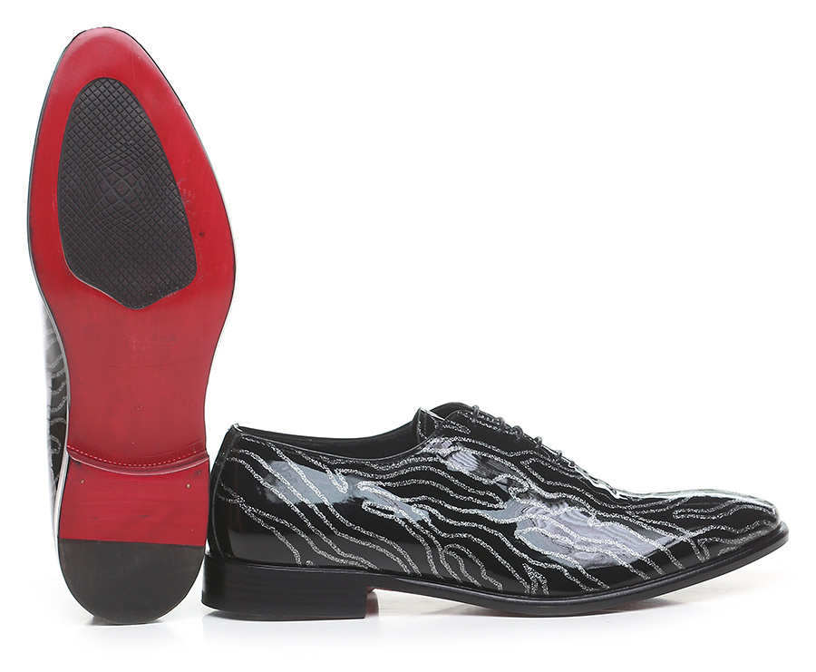 Patent shoe with leather and rubber sole. Heel height 25mm.