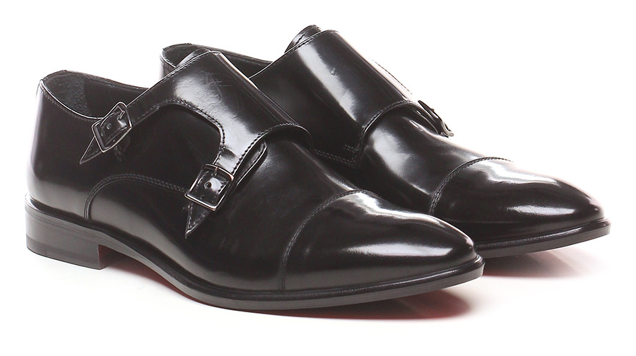 Laceless in brushed leather with front flap with double strap and leather and rubber sole. Heel 30.