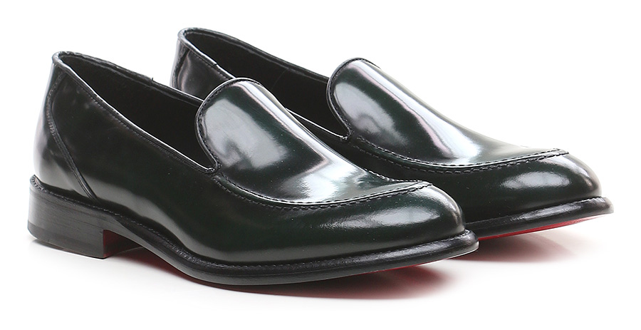 Loafer in brushed leather with leather sole. Heel height 25mm.
