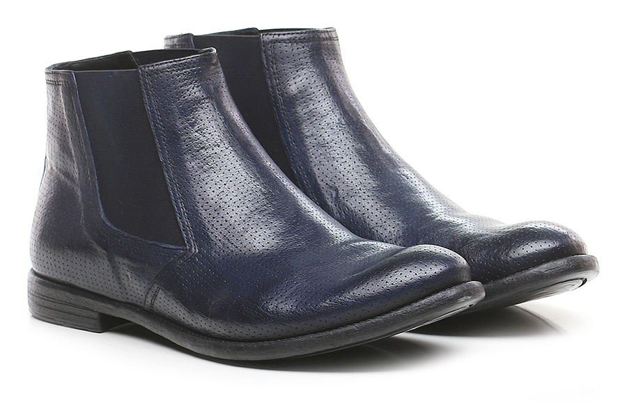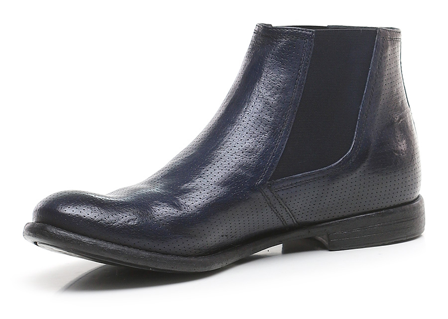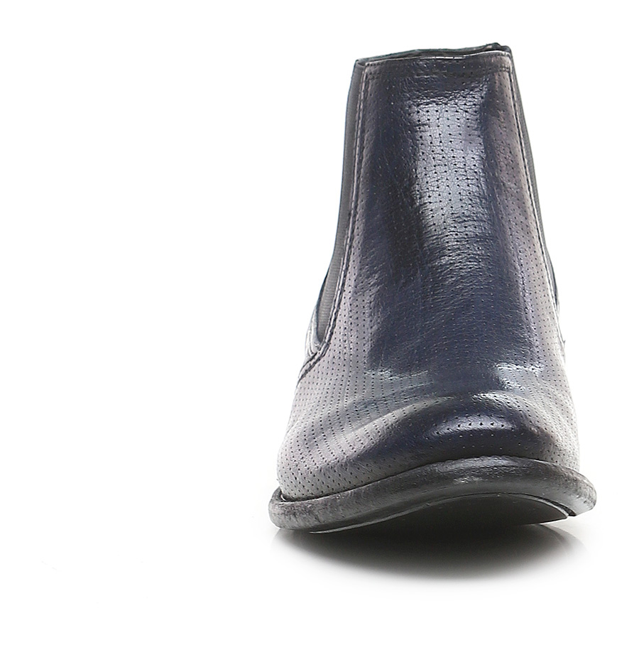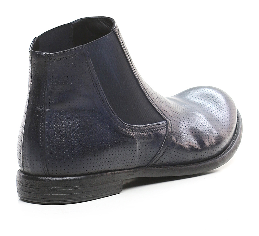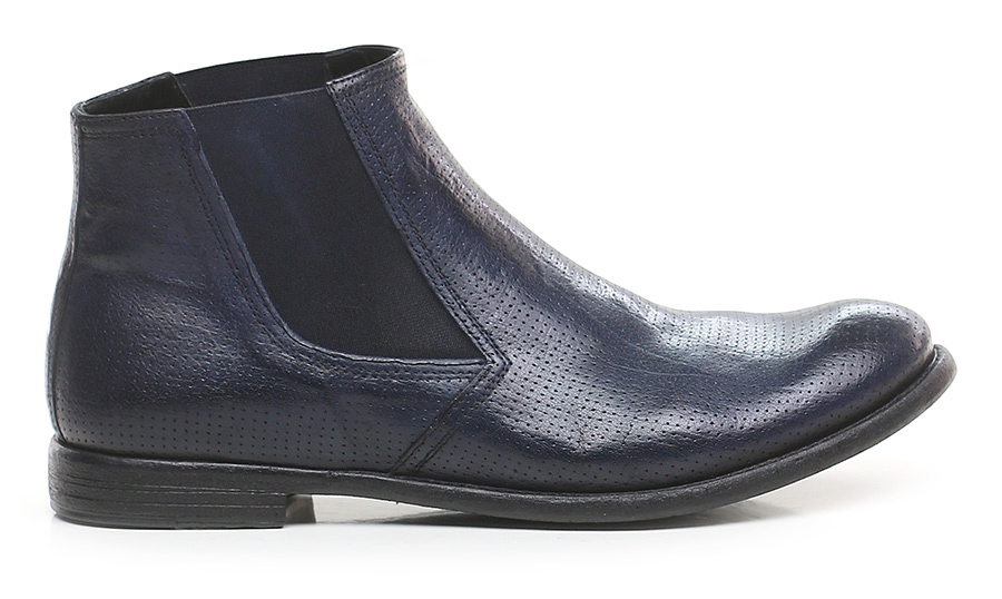 Vintage effect perforated leather ankle boot with elasticated inserts on both sides. Rubber sole. Heel height 20mm.