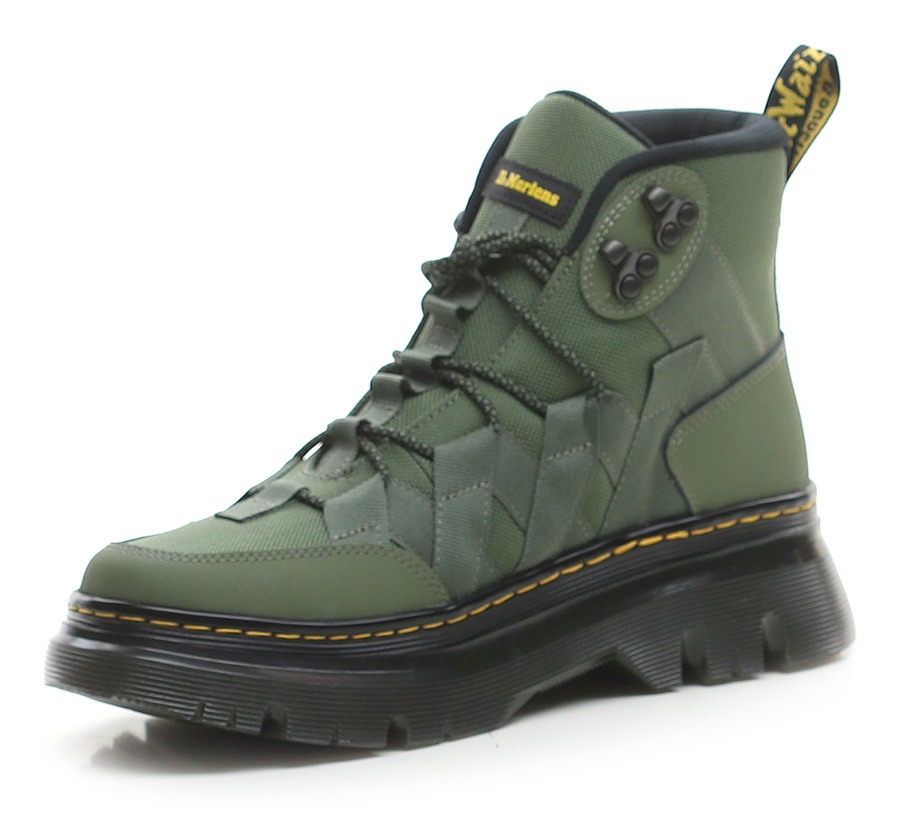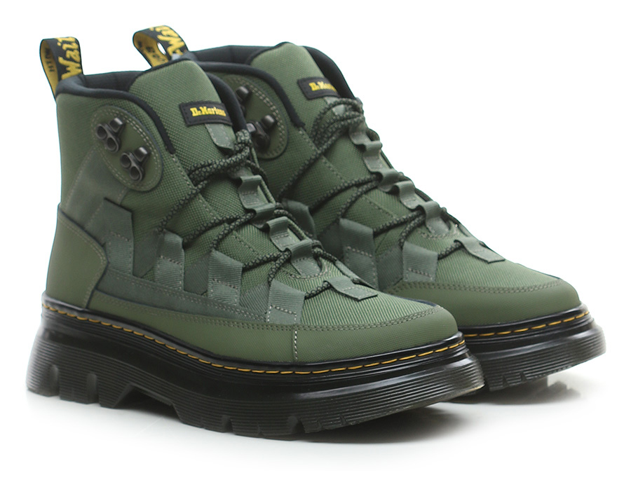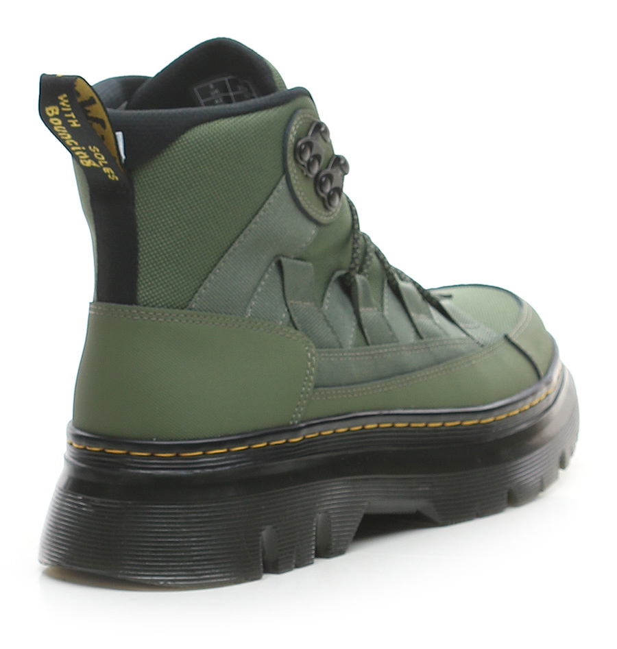 Ankle boot in leather and fabric with rubber sole. 55mm heel height, 40mm platform with 15mm ledge.