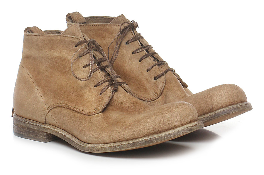 Vintage effect washed leather ankle boot, leather sole. Heel 25.