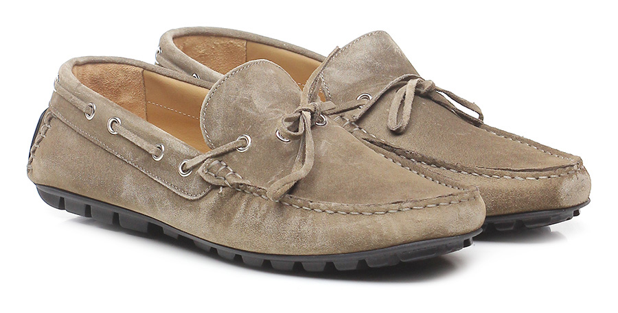 Mocassino in camoscio, suola in gomma. Tacco 20.