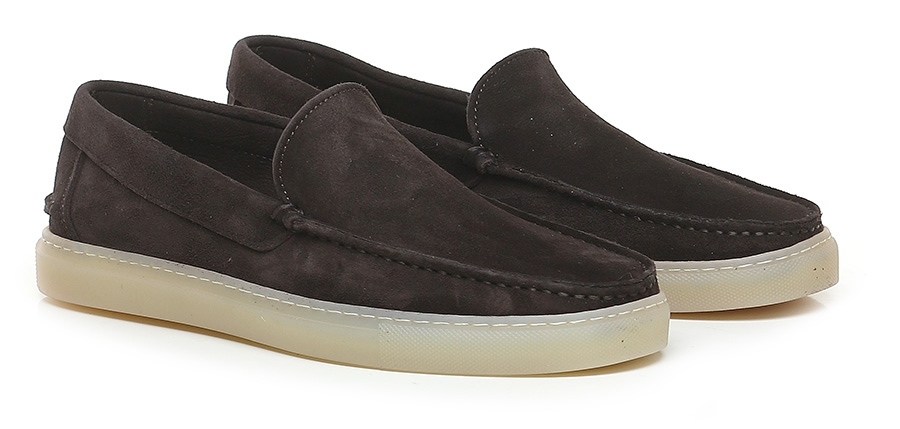 Mocassino in camoscio con suola in gomma. Altezza suola 25mm.