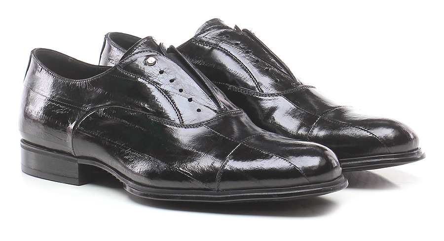 Senza stringhe in anguilla con inserto elasticizzato frontale, suola in gomma. Tacco 25.