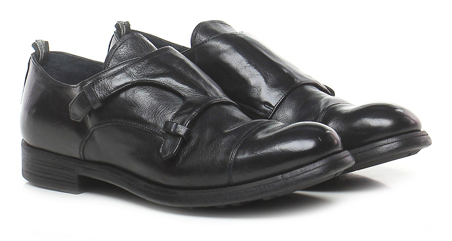 Without laces in hammered effect leather, rubber sole. Heel 30.