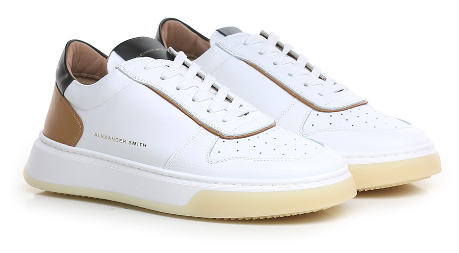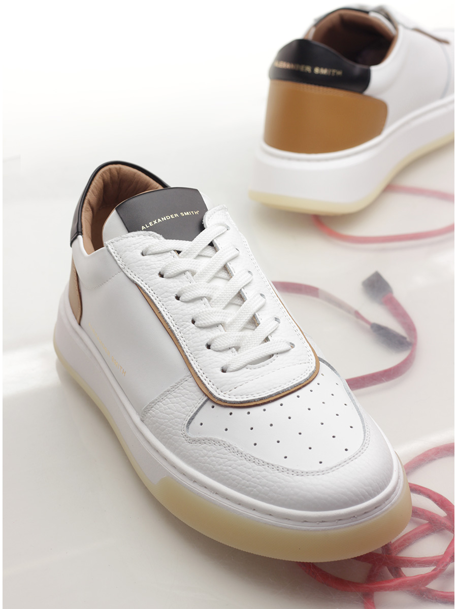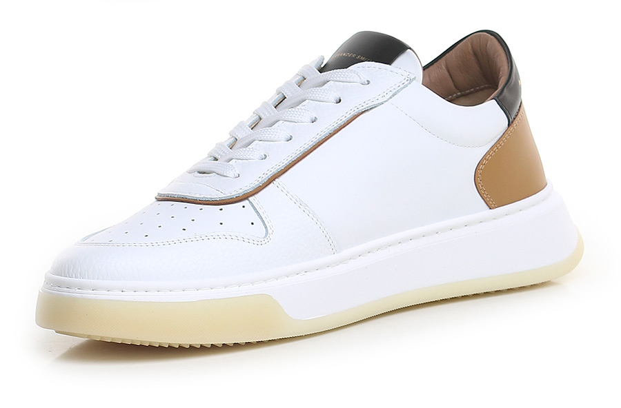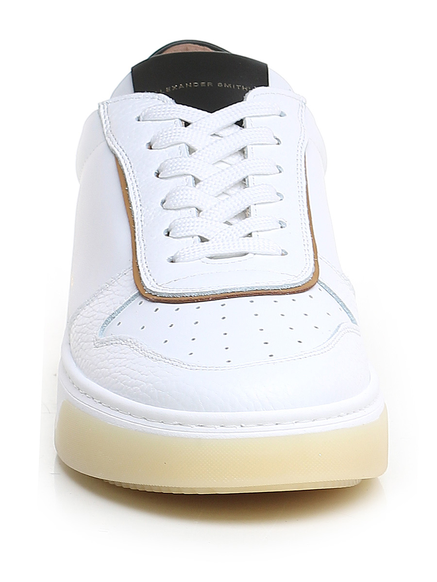 Leather sneaker with rubber sole. 40mm heel height, 30mm platform with 10mm ledge.