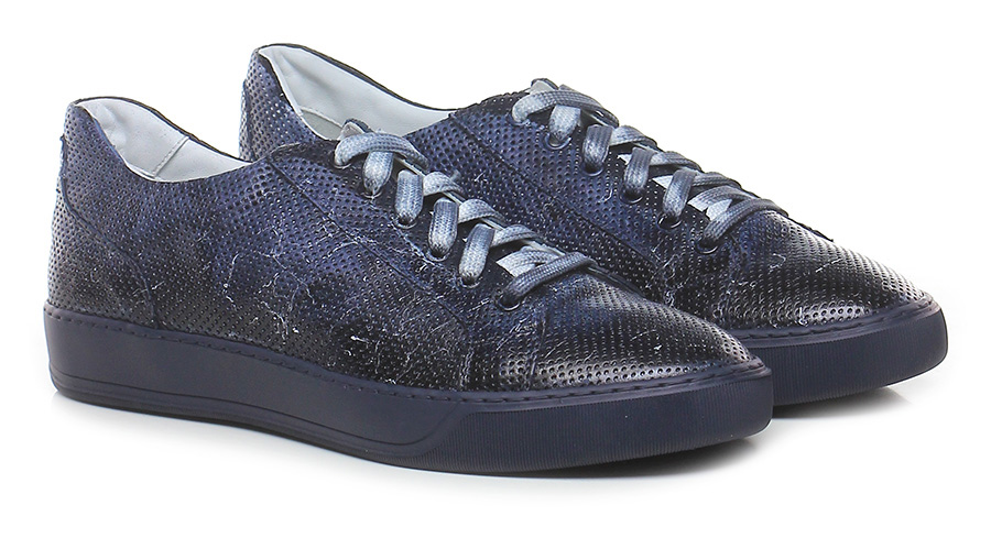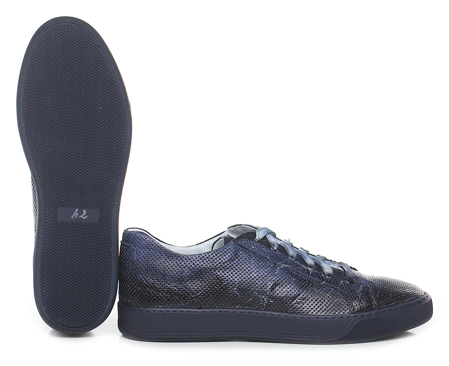 Laser cut leather sneaker, rubber sole. Sole height: 35, platform 30 with ledge 5.