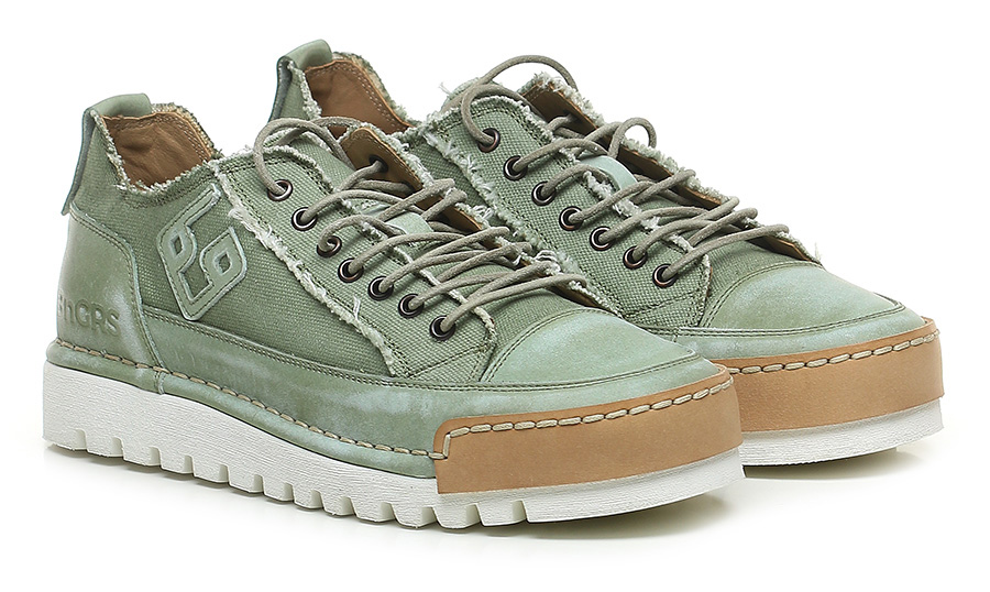 Sneaker in pelle effetto vintage e tessuto con suola in gomma. Altezza tacco 35mm, platform 25mm con battuta 10mm.