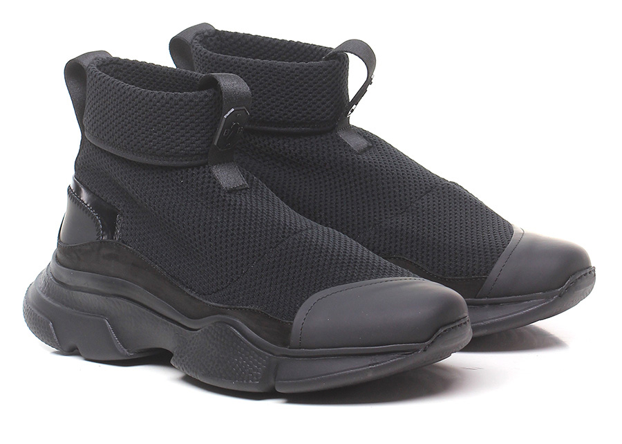 Sneaker in worked leather, eco leather and fabric with elasticated upper and rubber sole. 60 heel, 30 platform with 30 bar.