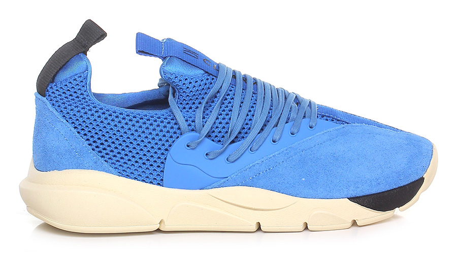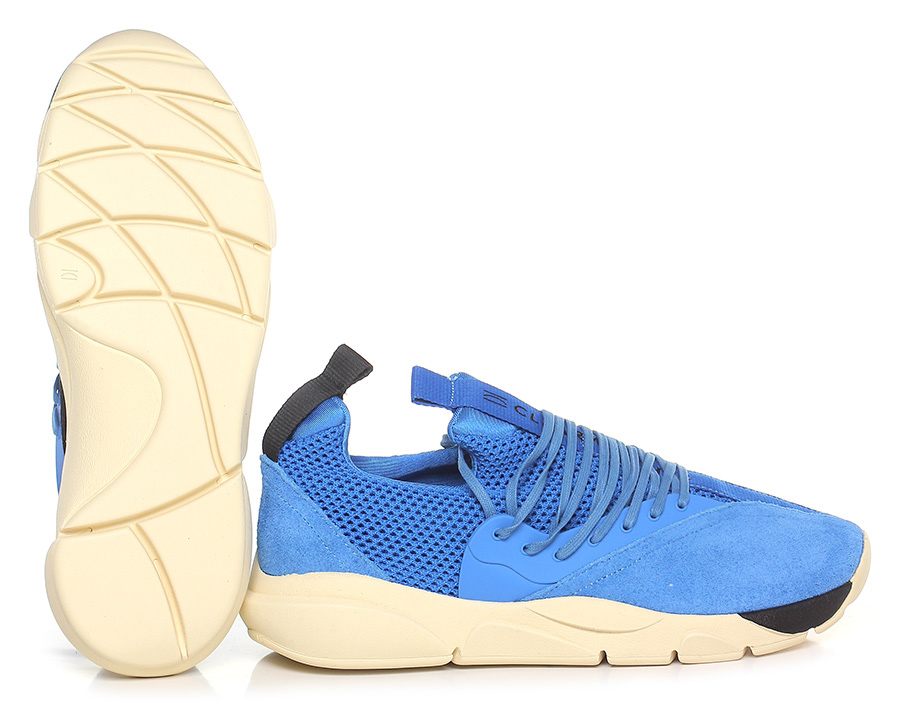 Suede and fabric sneaker with elasticated upper part and rubber sole. Heel 50, platform 25 with ledge 25.