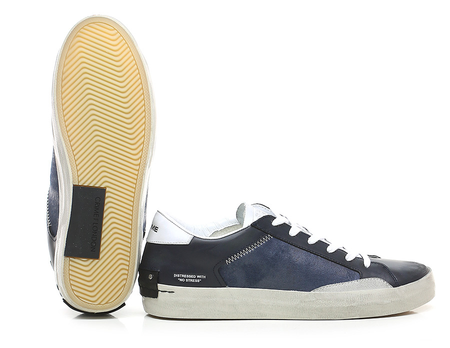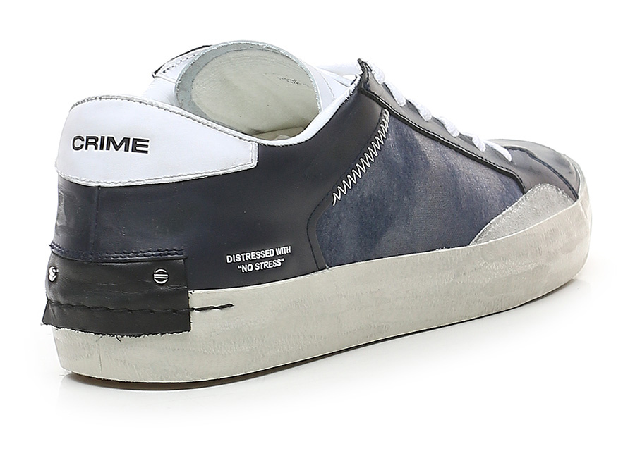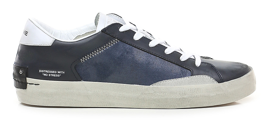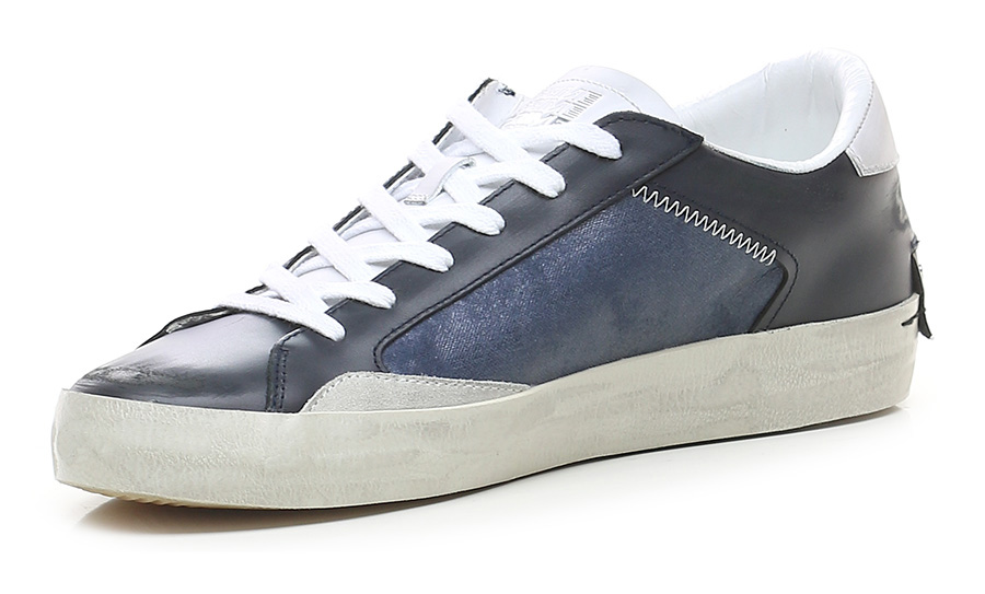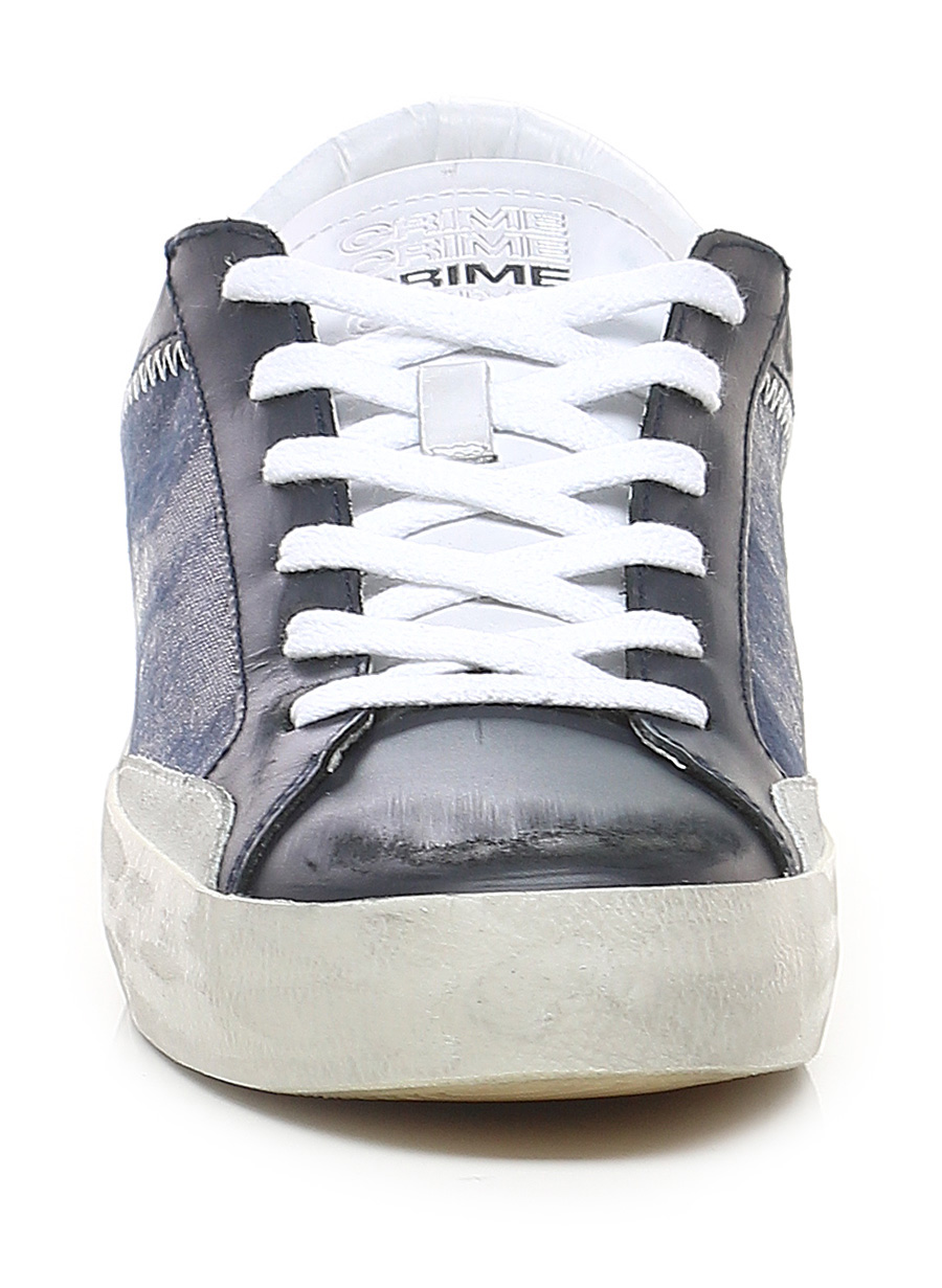 Vintage effect leather and fabric sneaker with suede inserts. Vintage effect rubber sole. 35mm heel height, 25mm platform with 10mm ledge.