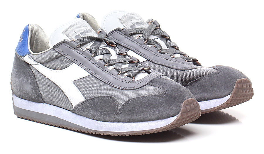 Sneaker in pelle vintage, camoscio e tessuto con suola in gomma. Tacco 45, platform 25 con battuta 20.