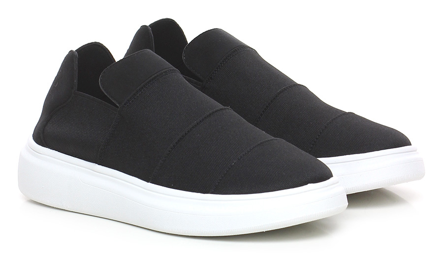 Sneaker in tessuto elasticizzato e inserti in camoscio, suola in gomma light, tacco 45, platform 30 con battuta 15.