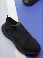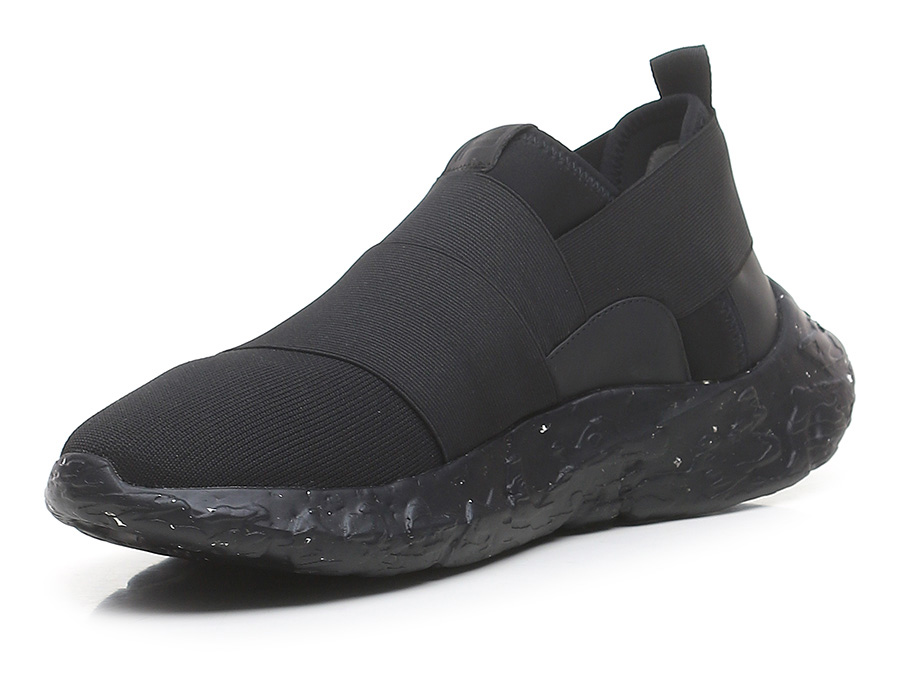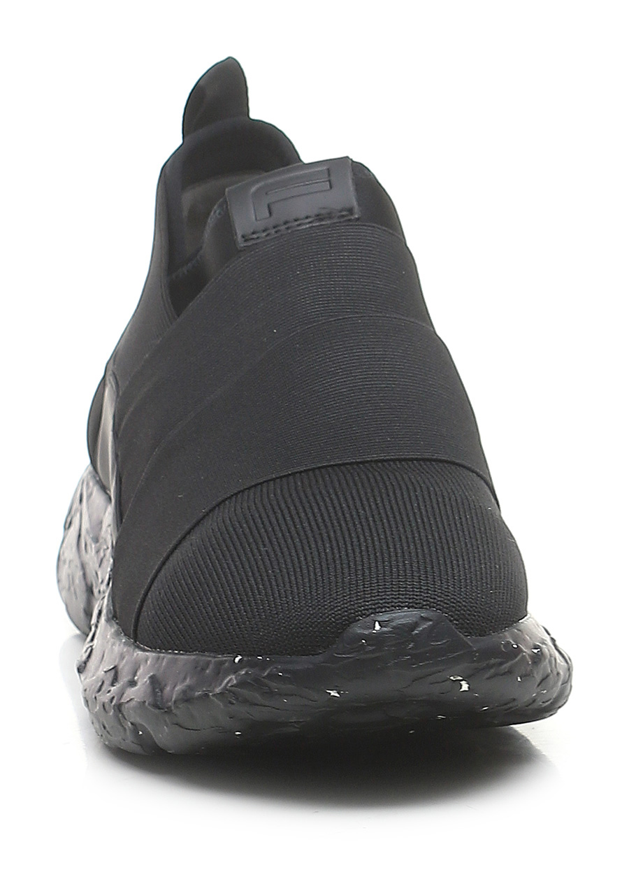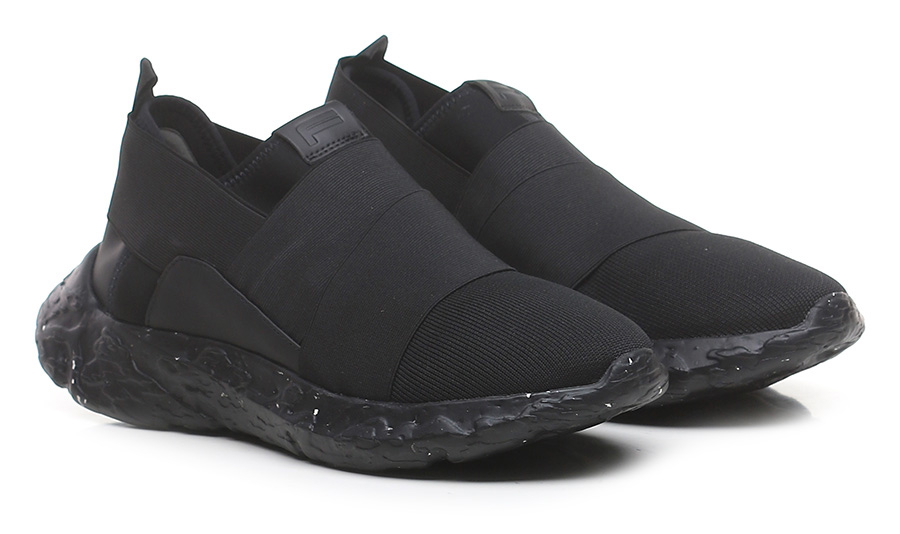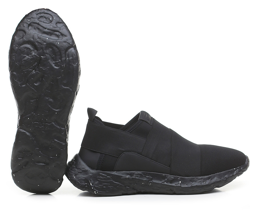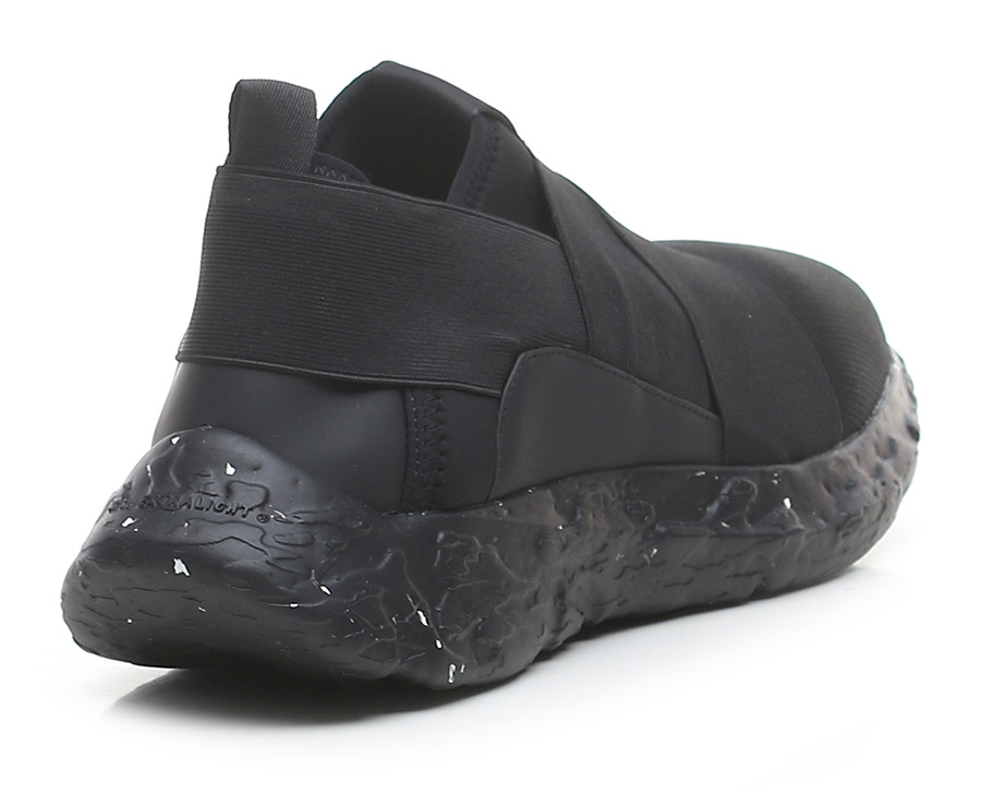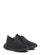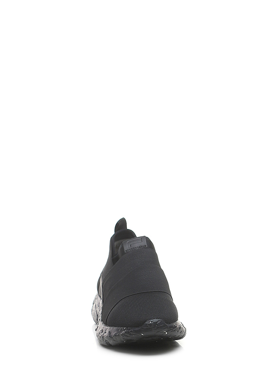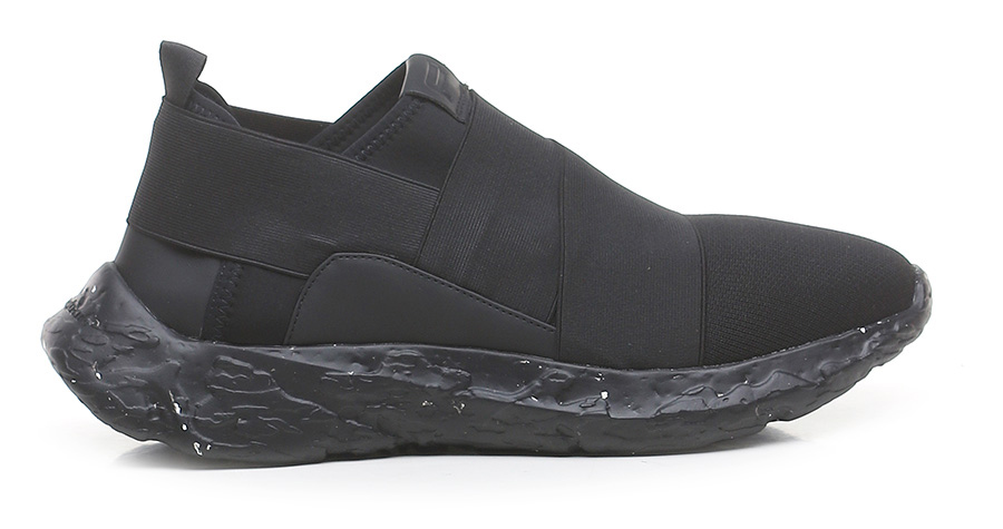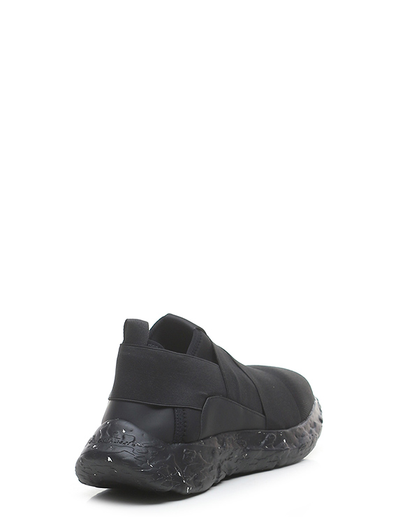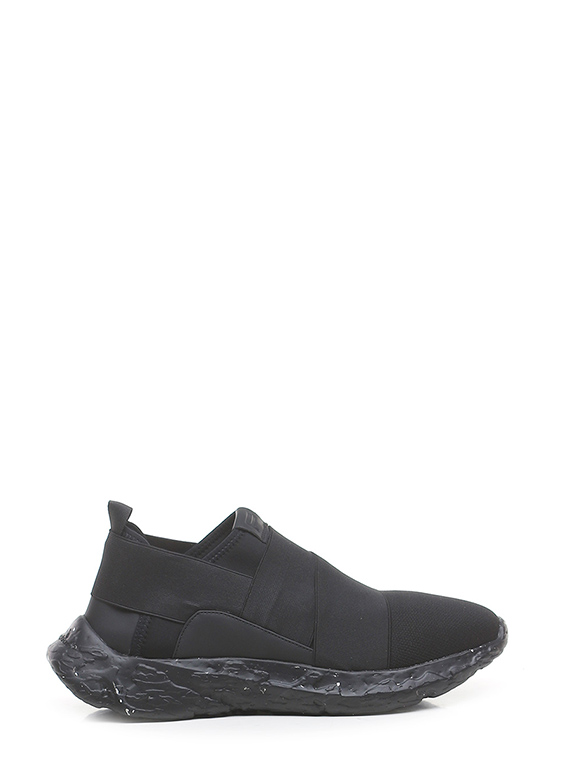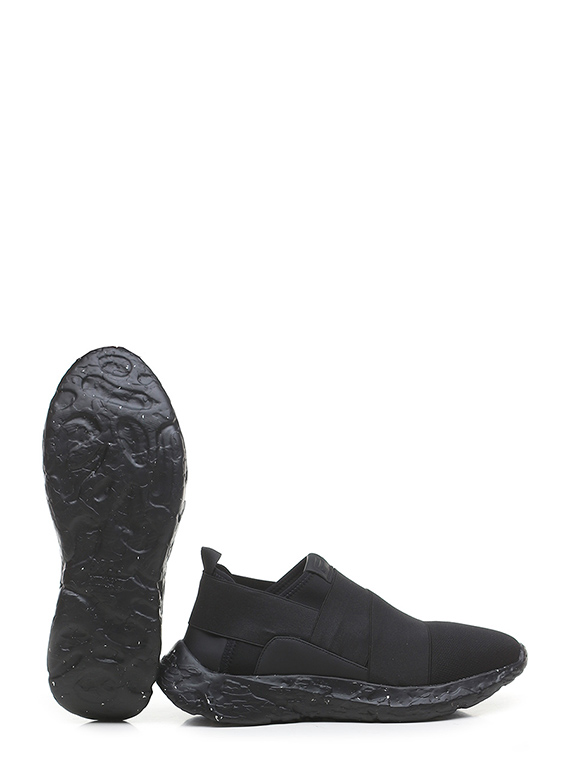 Sneaker in stretch fabric and rubber with extralight recycled rubber sole. 40mm heel height, 30mm platform with 10mm ledge.
