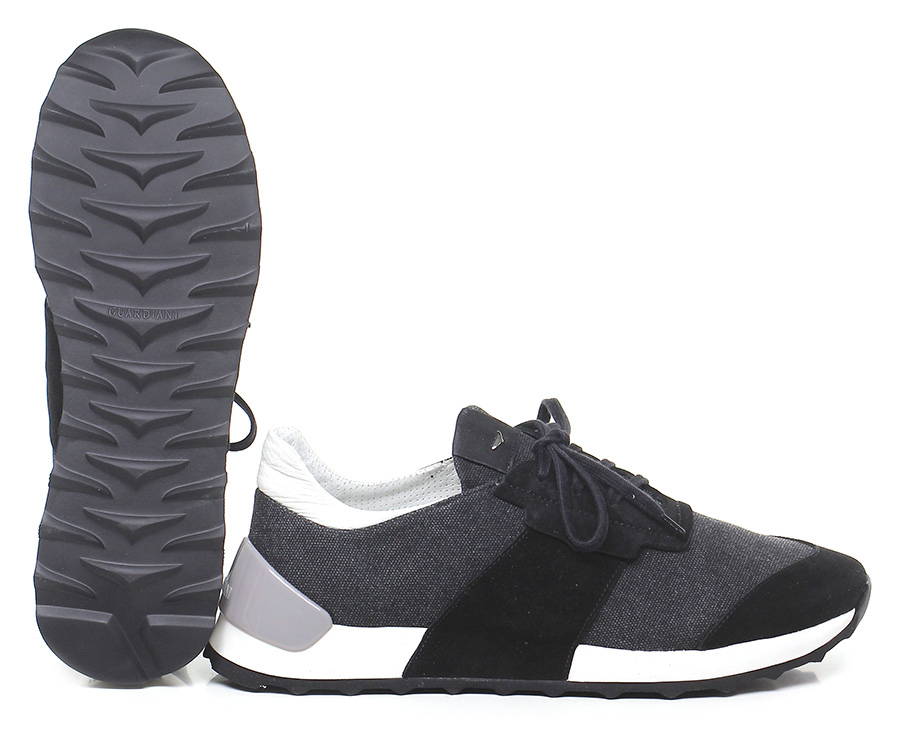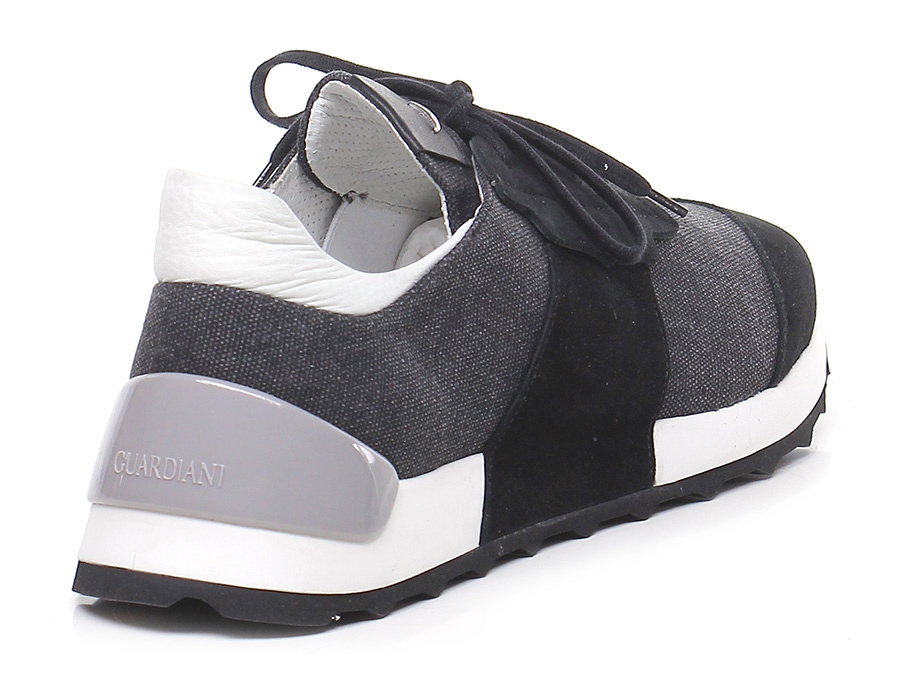 Suede and fabric sneaker with rubber sole. 40 heel, 20 platform with 20 bar.