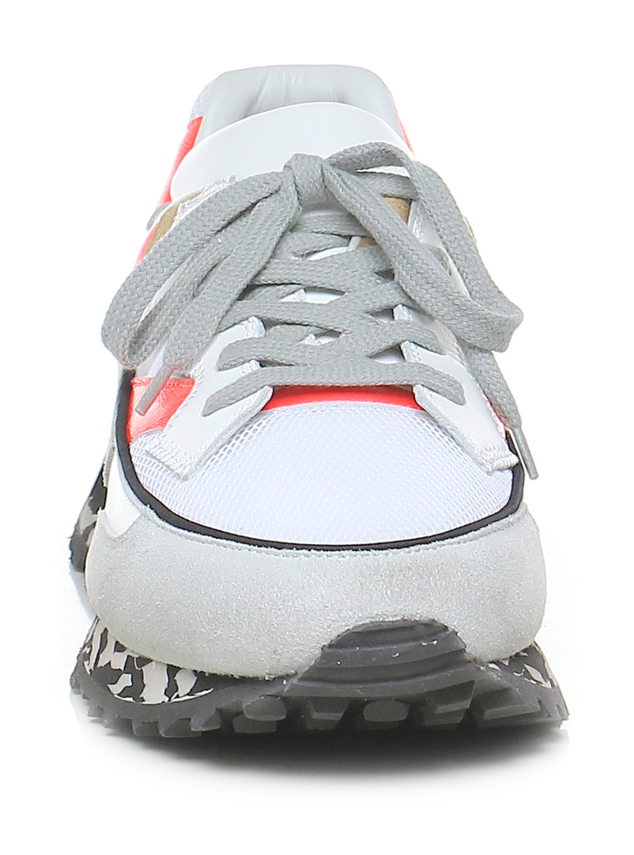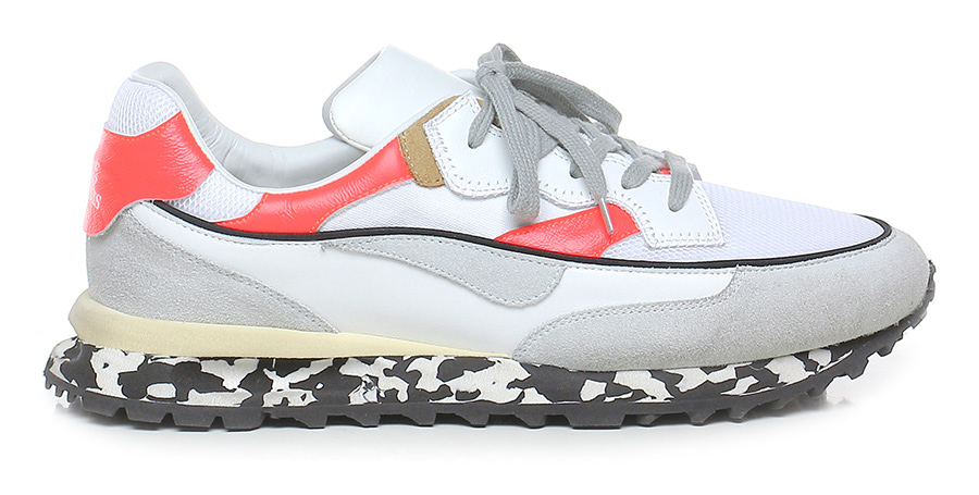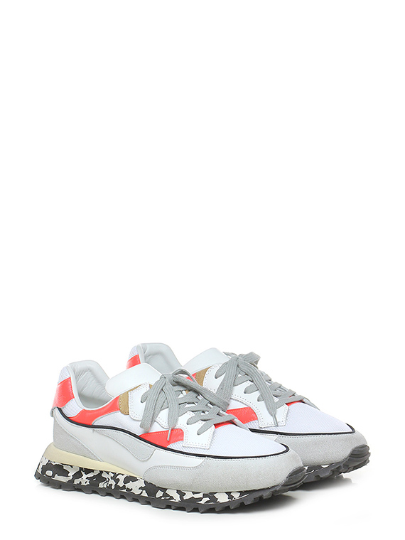 Fabric sneaker with suede and leather inserts, rubber sole. Sole height: 40, platform 20 with 20 ledge.