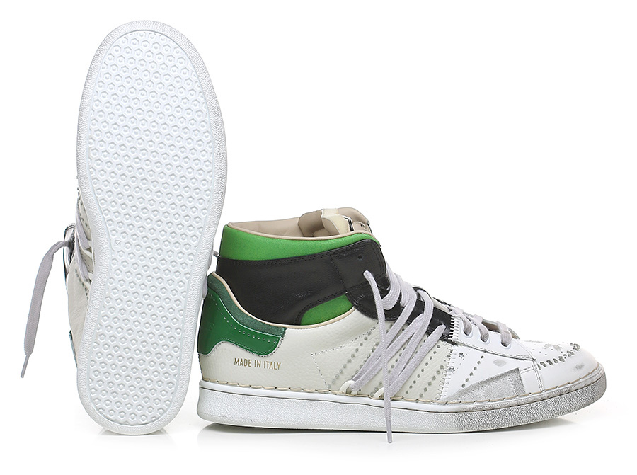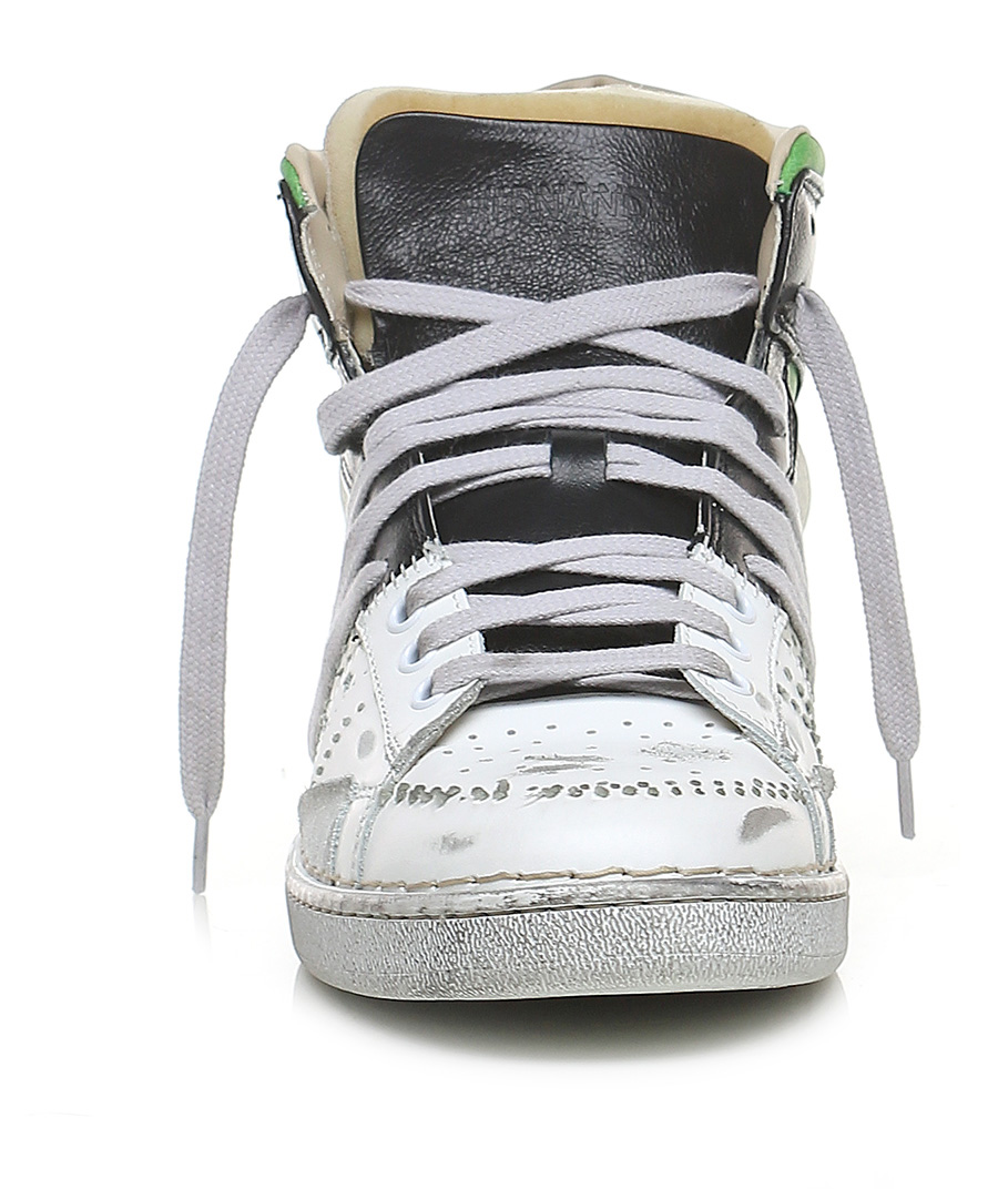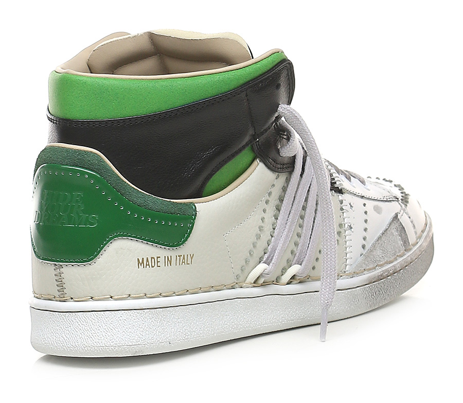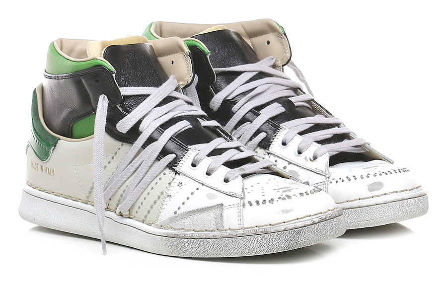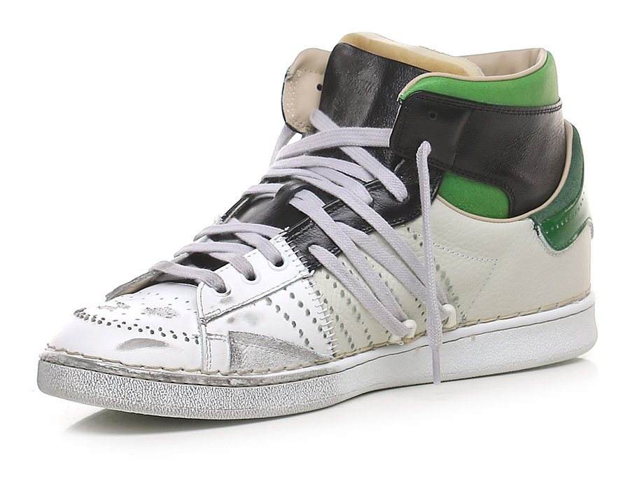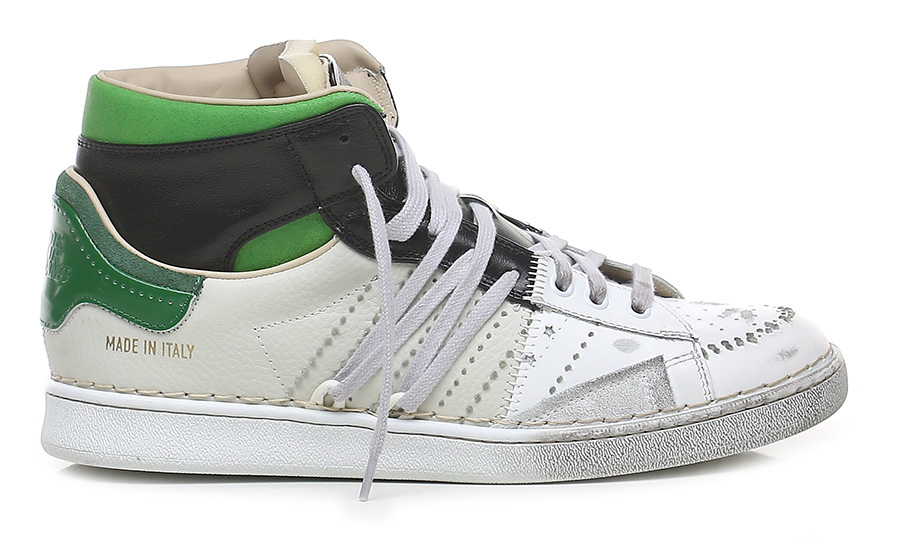Vintage effect leather sneaker with leather inserts. Rubber sole. 25mm heel height, 20mm platform with 5mm ledge.